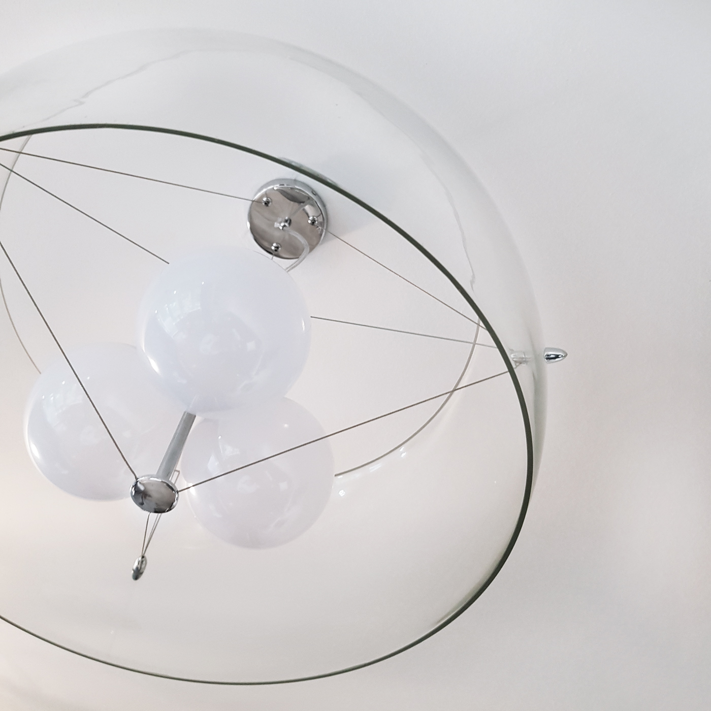 Lampa wisząca przezroczysta GLOBO o nowoczesnym wyglądzie. Transparentna lampa dostępna w dwóch wersjach: o średnicy 40 lub 50 cm - do wyboru. Wykonana ze szkła i metalu.
