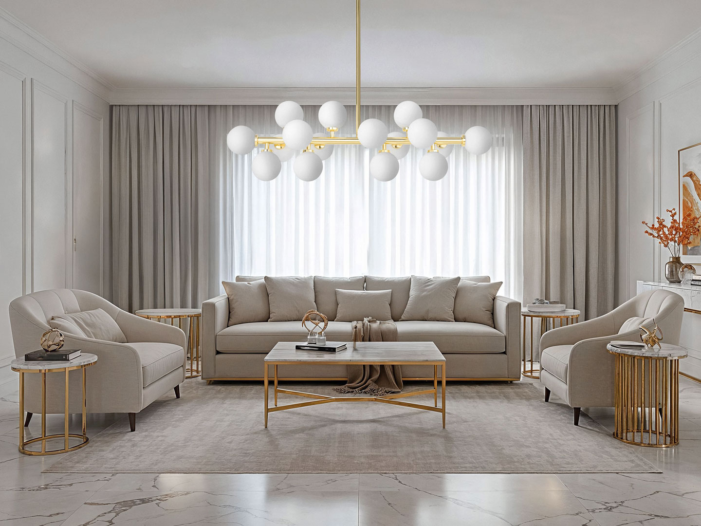 Nowoczesna biała tapeta w bańki, bąbelki, grochy szare, czarne i żółte Style