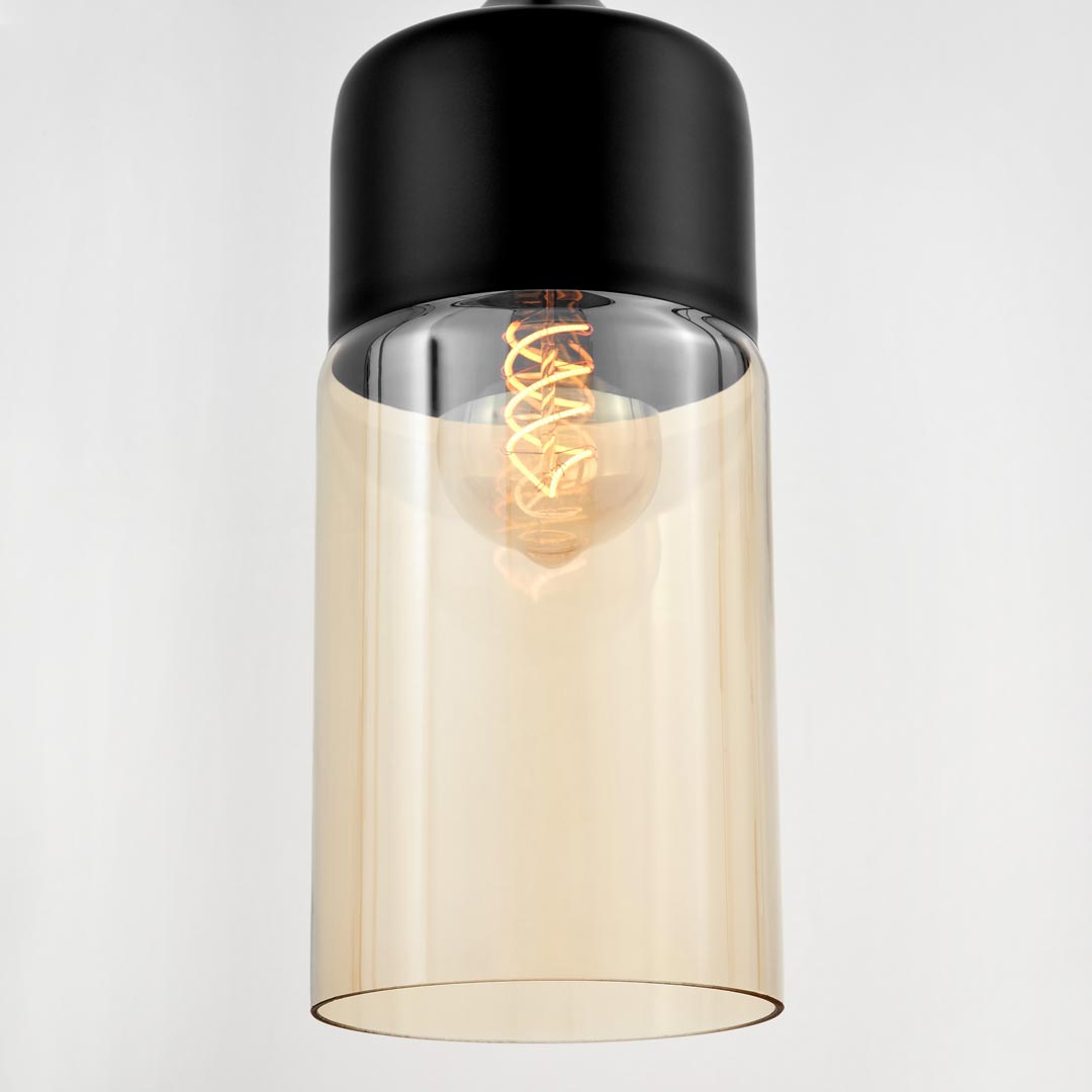 Klasyczna pionowa lampa wisząca ZENIA w stylu industrialnym. Wykonana z czarnego metalu oraz przezroczystego szkła wysokiej jakości. Zawieszana na czarnym kablu. Świetnie nada się do salonu, kuchni lub jadalni.