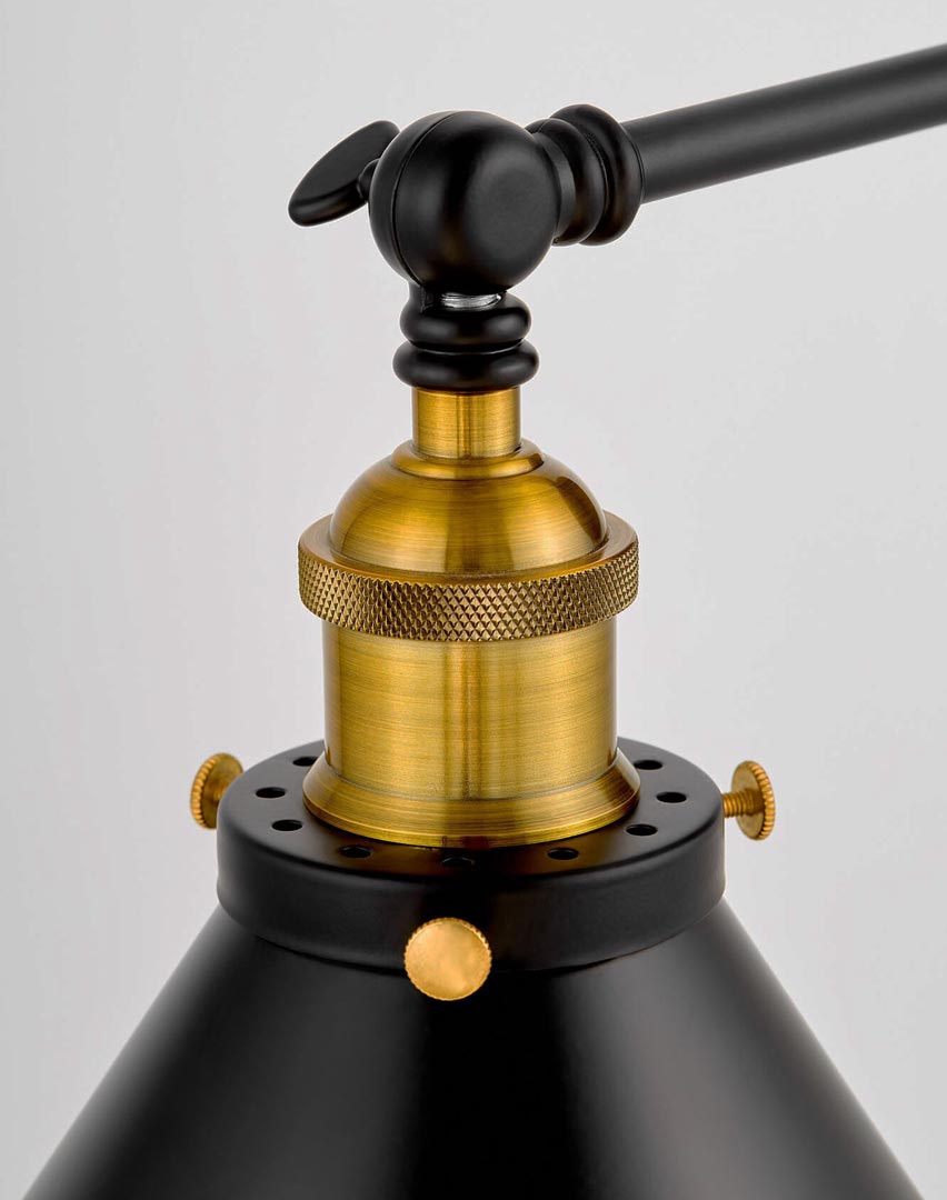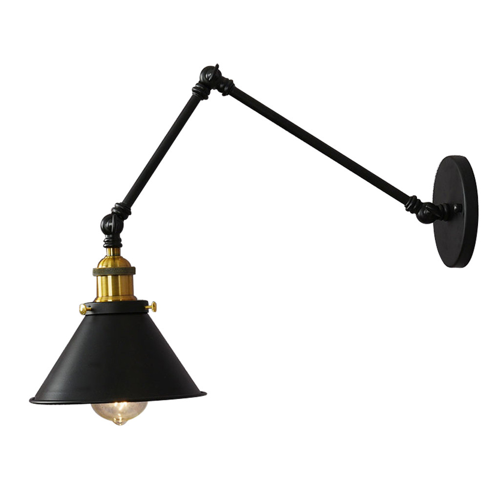 Regulowany, loftowy kinkiet GUBI W2 z czarnym abażurem metalowym. Wykonany w stylu industrialnym, dzięki czemu sprawdzi się we wnętrzach retro, vintage ale również w nowoczesnych. Regulowane ramię powoduje, że lampę można idealnie ustawić do czytania w sypialni lub salonie.
