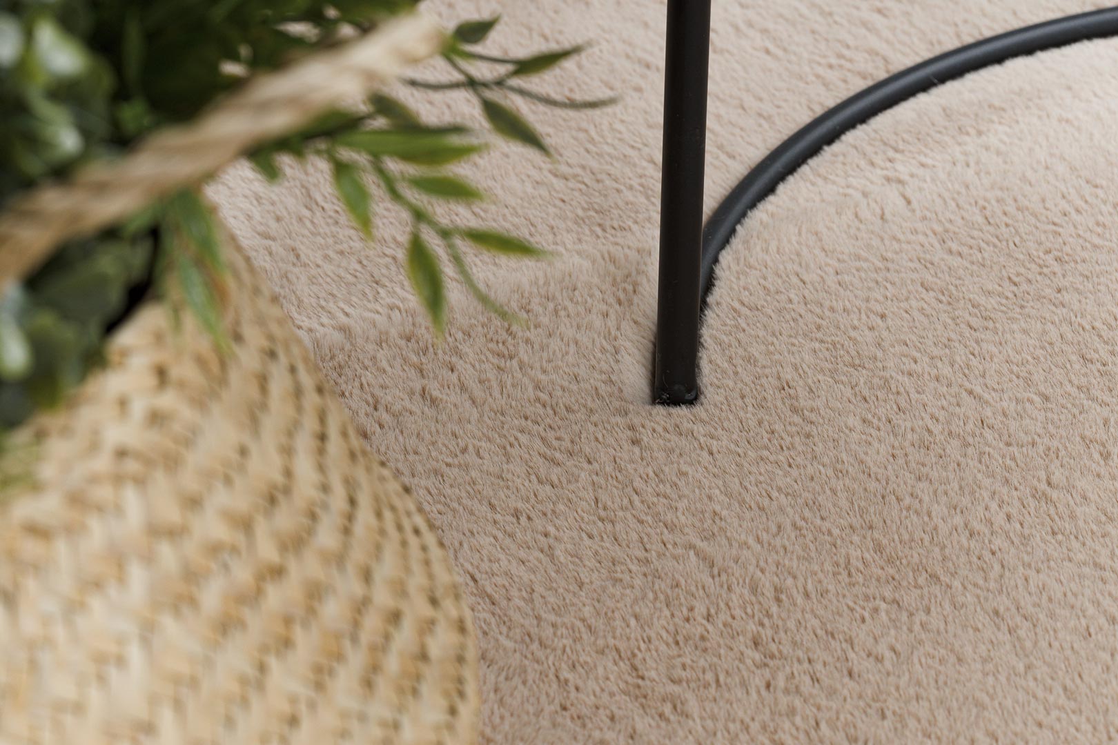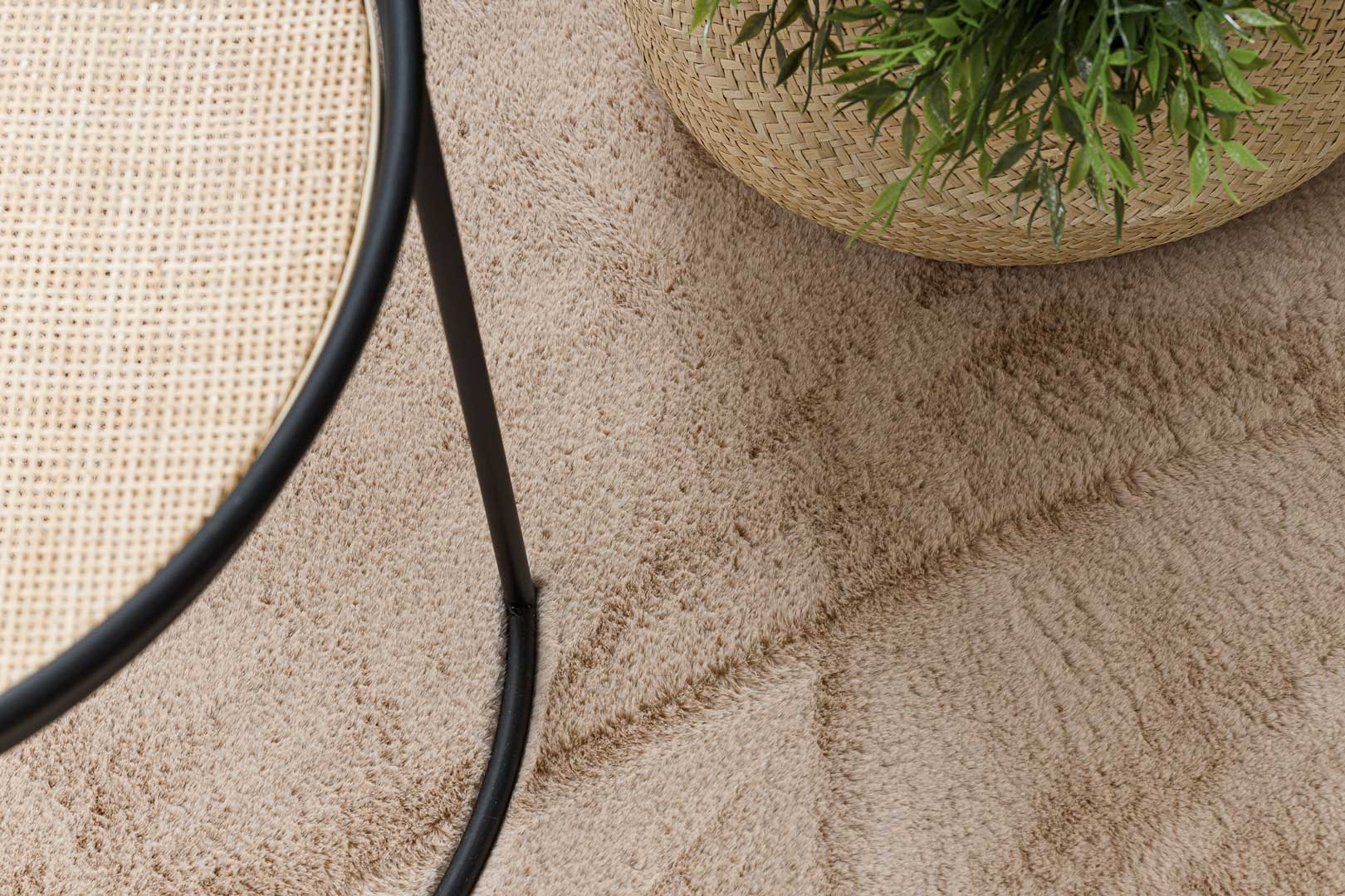 Miękki beżowy dywan do sypialni z pluszu, styl glamour i boho, do prania - POSH Shaggy