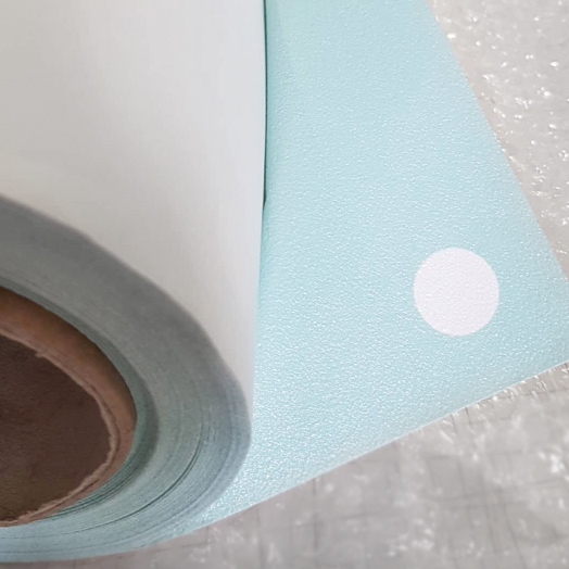 Miętowa tapeta w małe białe kropki, groszki, polka dot 2 cm