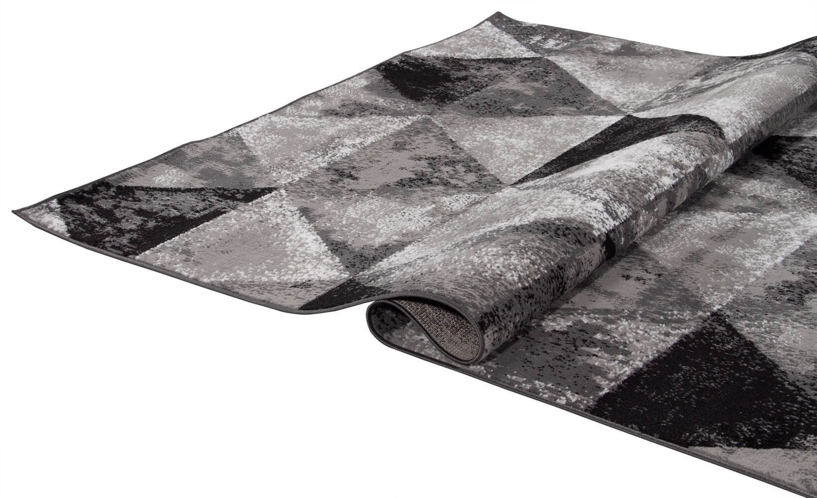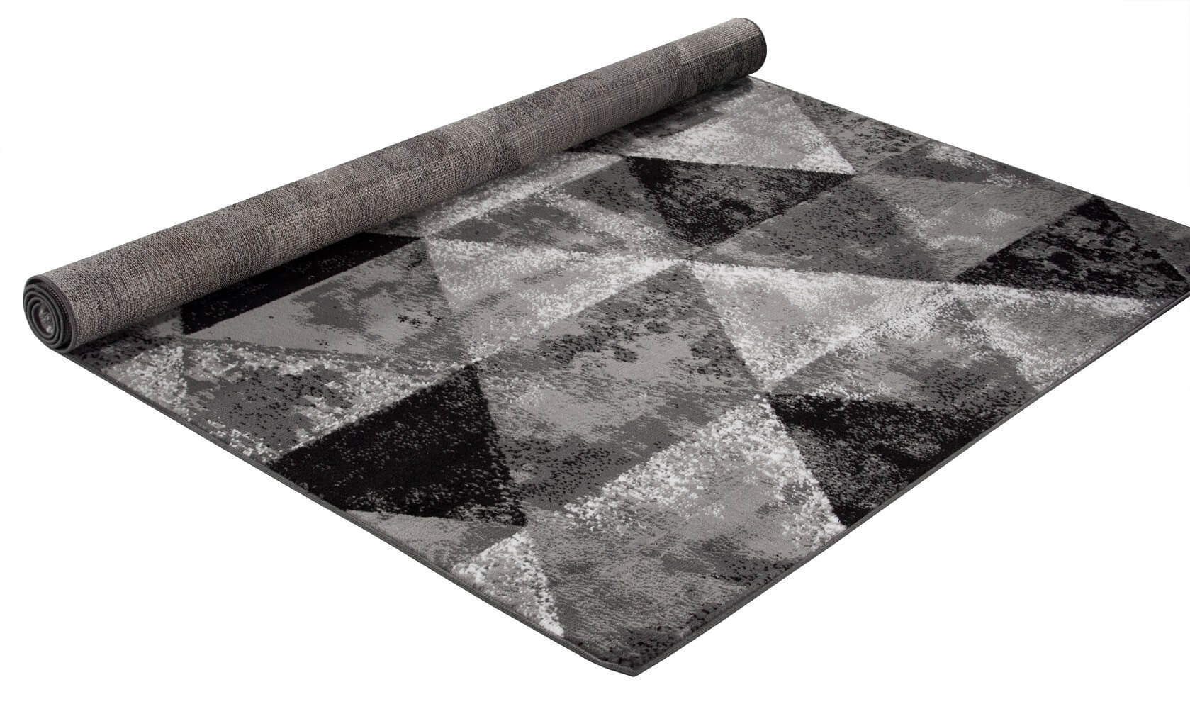 Młodzieżowy dywan w szare i czarne przecierane trójkąty Almas 03 modny nowoczesny