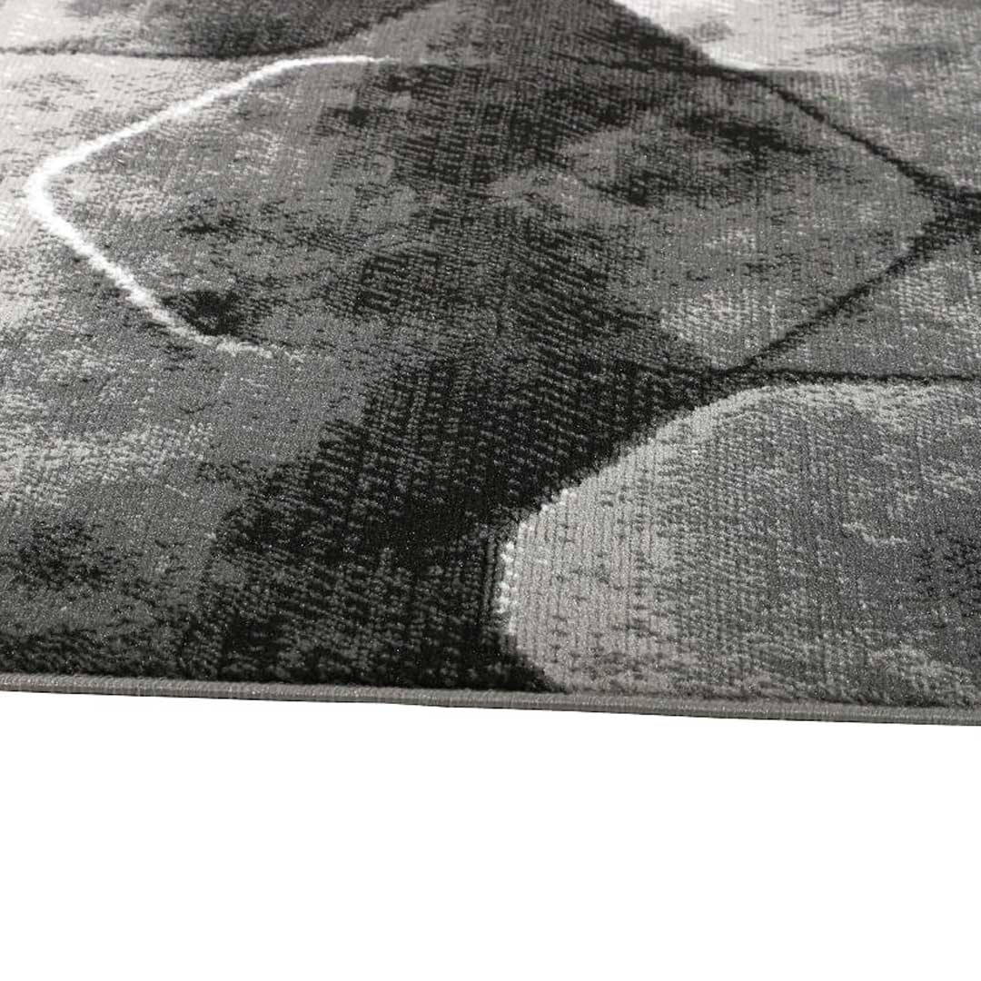Ten niezwykle modny dywan w geometryczny wzór w odcieniach czerni, bieli i szarości będzie idealnym dodatkiem do każdego klasycznego jak i nowoczesnego wnętrza, które potrzebuje minimalnego przyciemnienia. Materiał, który został użyty do produkcji tego produktu oferuje trwałość, miękkość i łatwość w usuwaniu wszelkich zabrudzeń.