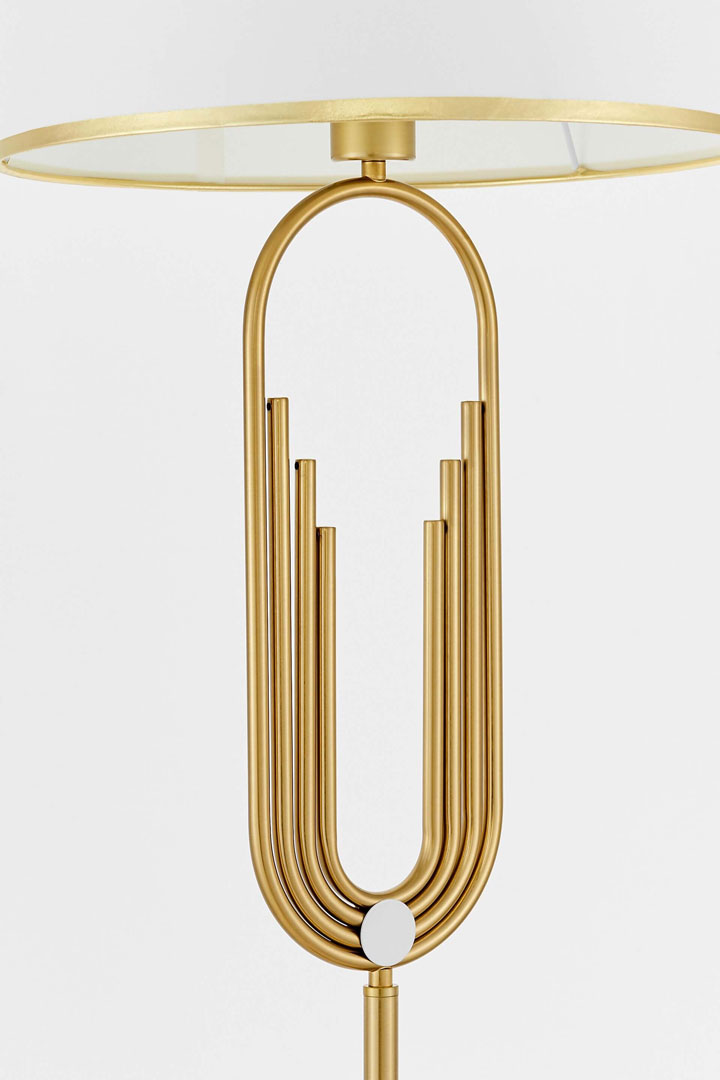 Mosiężna lampa stojąca podłogowa, biały abażur, glamour, art deco, new hampton - ZANETTI