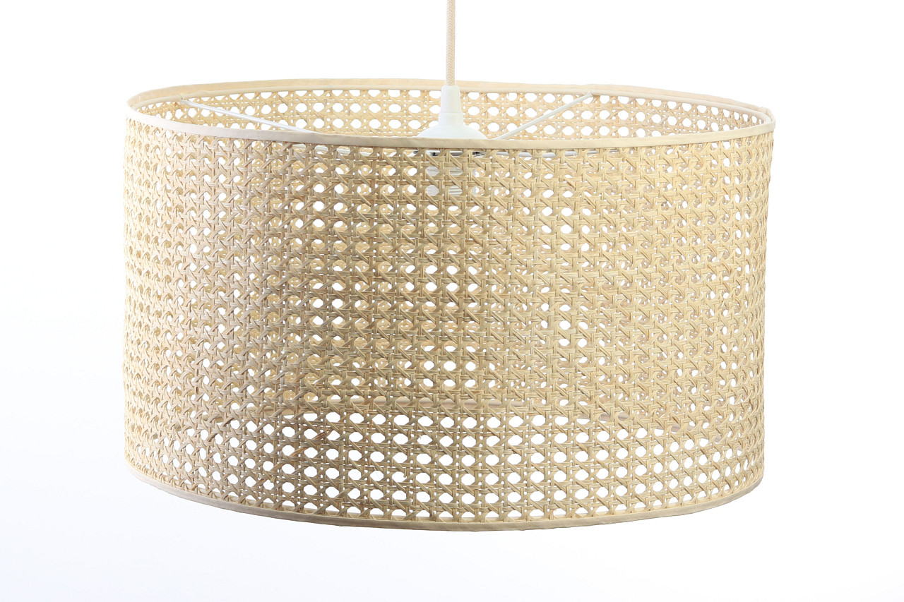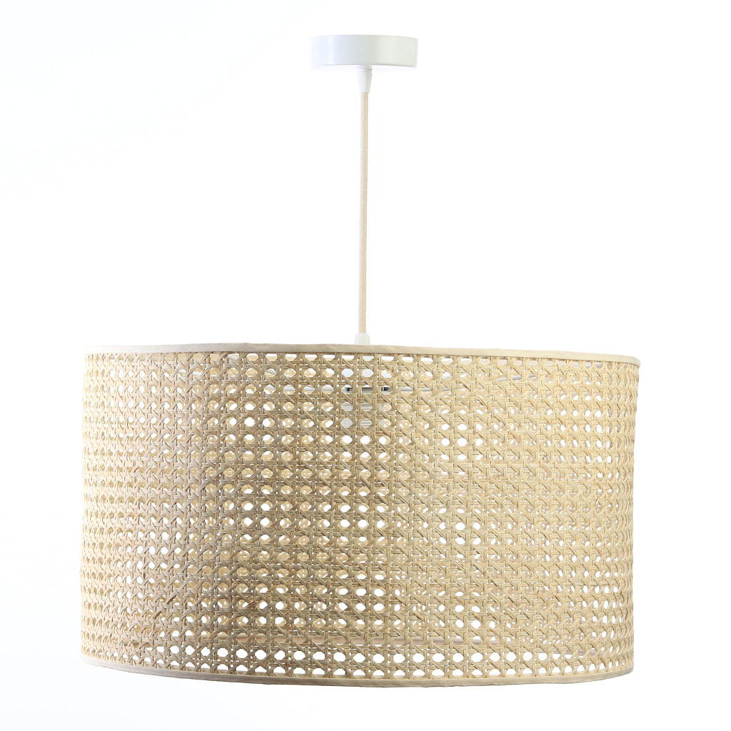 Naturalna lampa wisząca z rattanowym, walcowym kloszem boho ROTANG