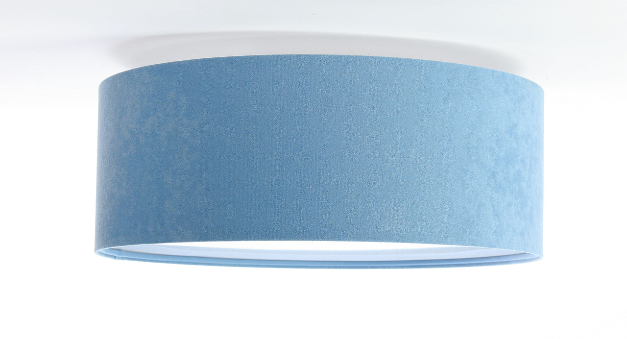 Niebieska lampa sufitowa, walcowy plafon z okrągłym abażurem z weluru