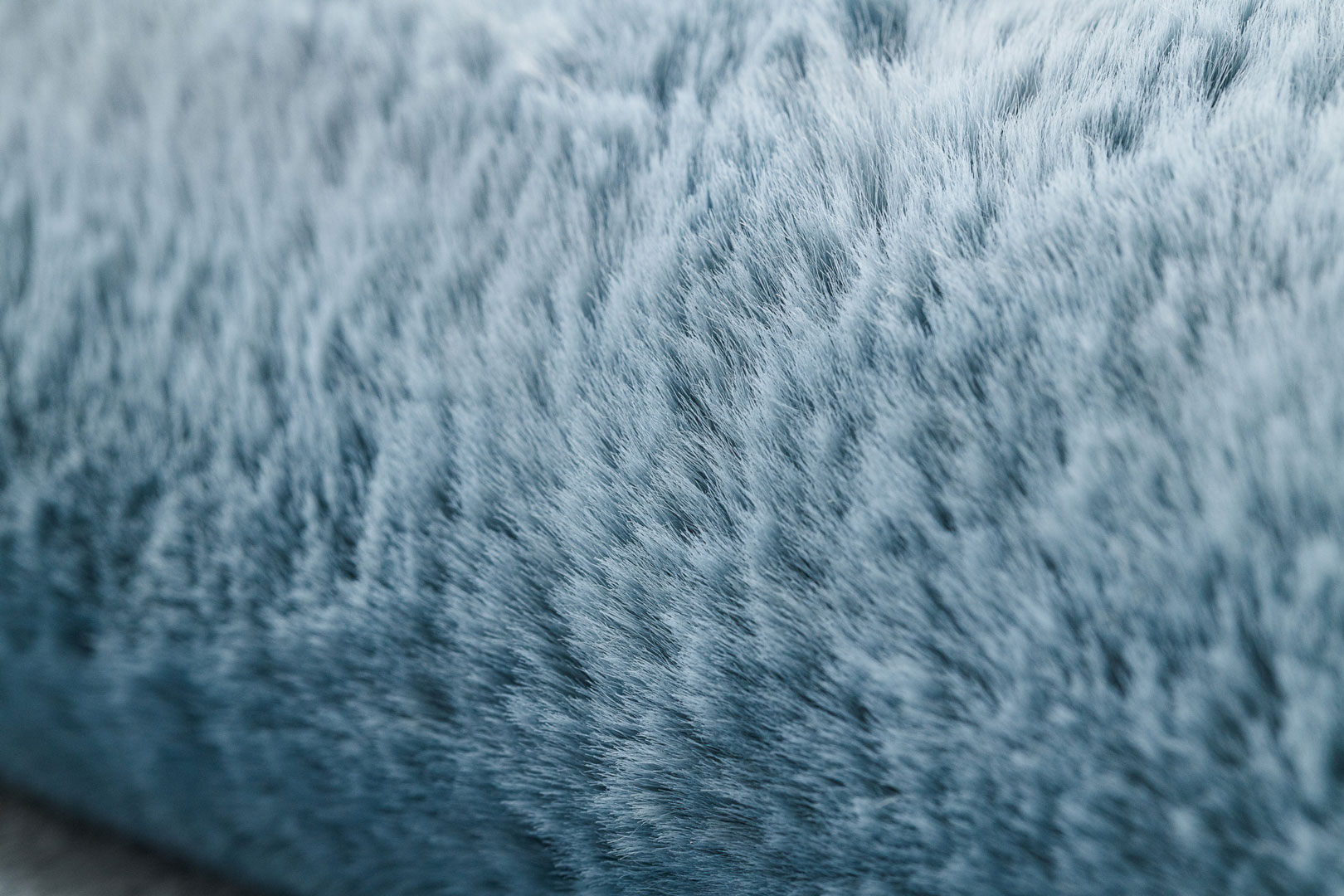 Styl i delikatność: miękkie, pluszowe runo w modnym kolorze niebieskim zgaszonym uzupełni aranżację, wniesie przytulność i ciekawy akcent.