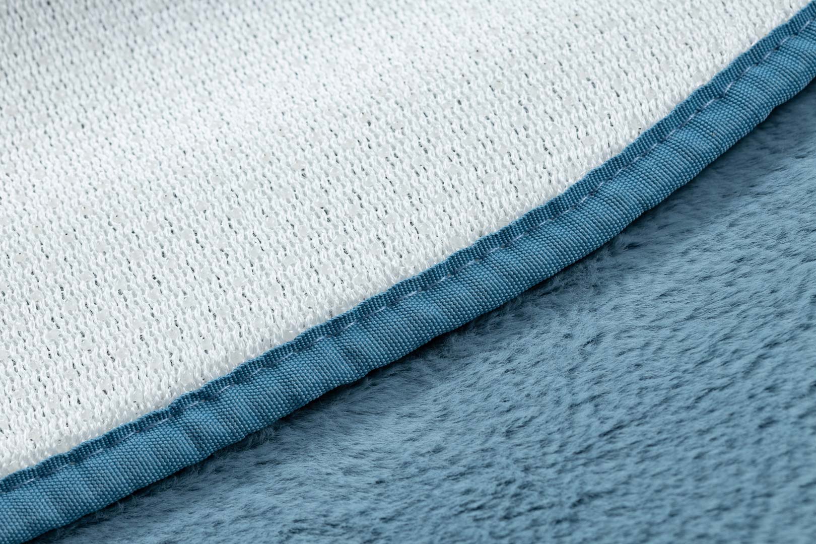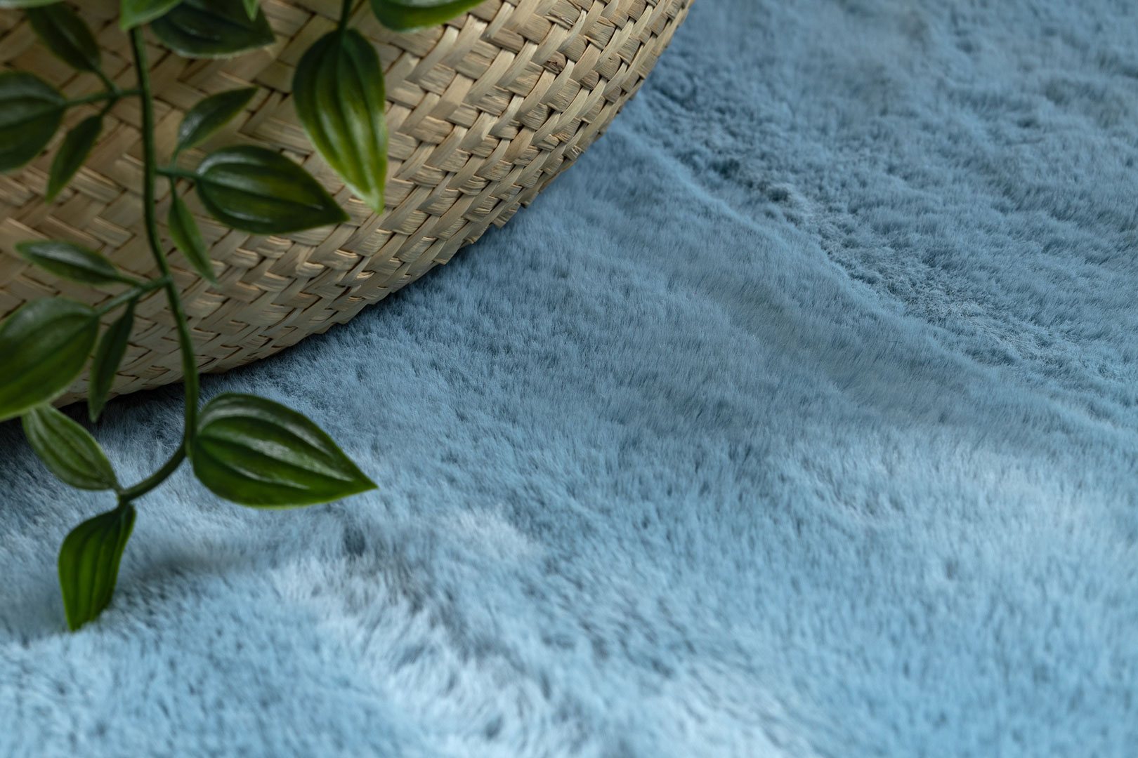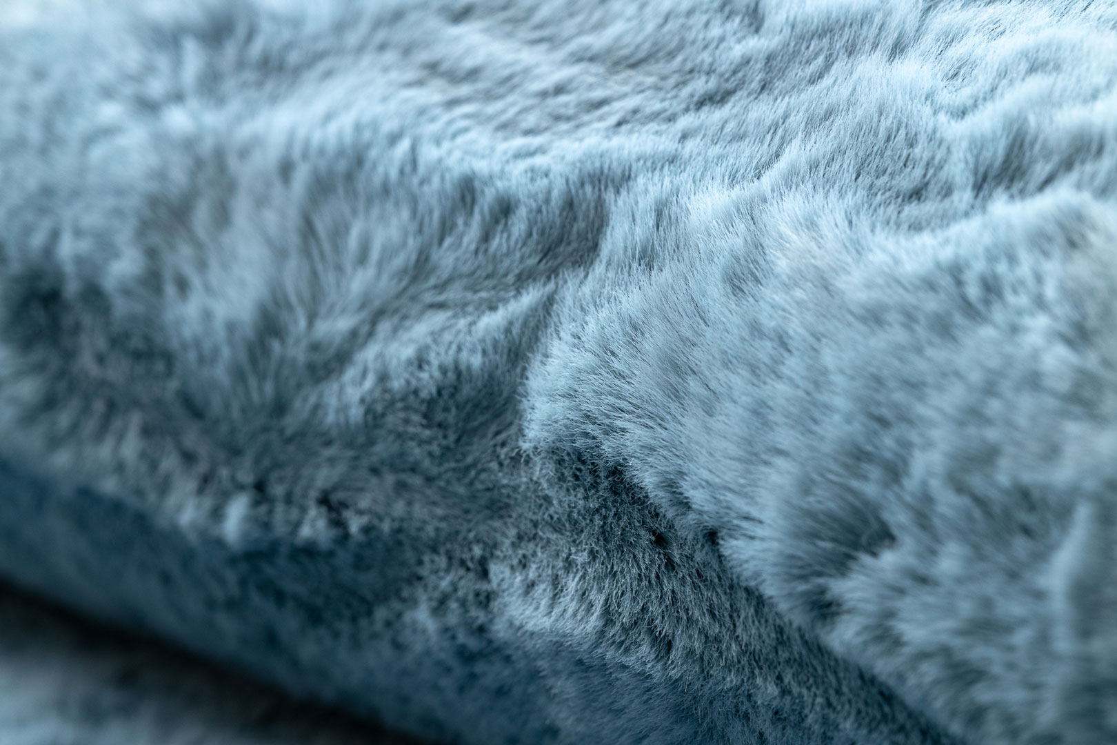 Przytulność i elegancja: idealnie miękkie runo pluszowe w zgaszonym niebieskim odcieniu sprawi, że każde wnętrze zyska modny i ciekawy charakter.