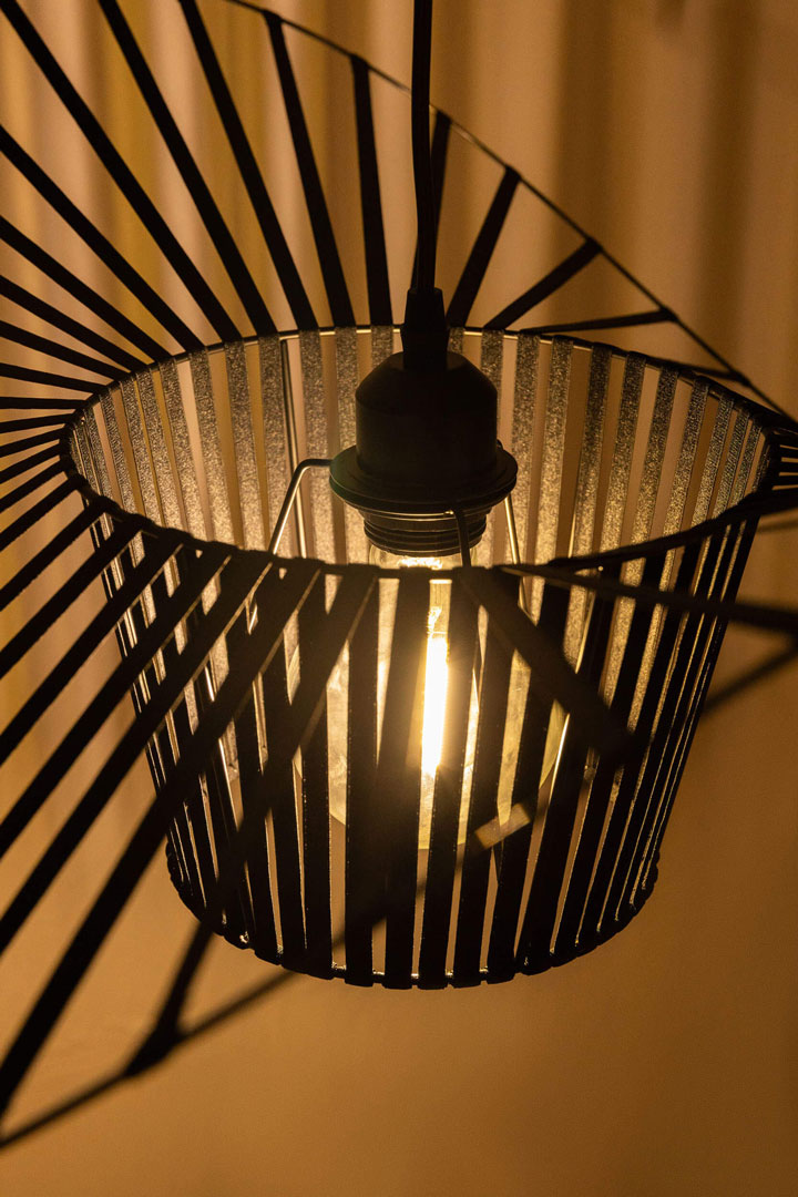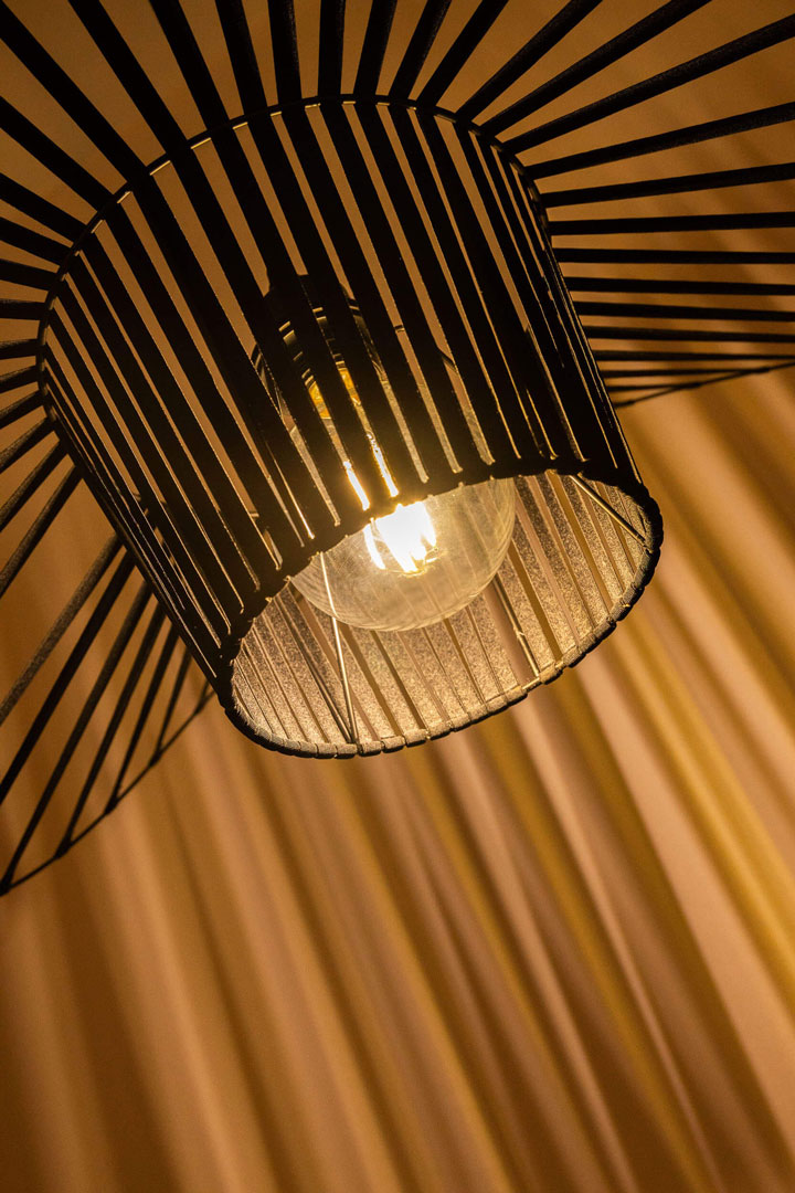 Dzięki swojej otwartej konstrukcji lampa nie tylko oświetla przestrzeń, ale również staje się jej wyrazistą dekoracją. Świetnie komponuje się z żarówkami dekoracyjnymi typu Edison, które dodatkowo podkreślą jej designerski charakter.