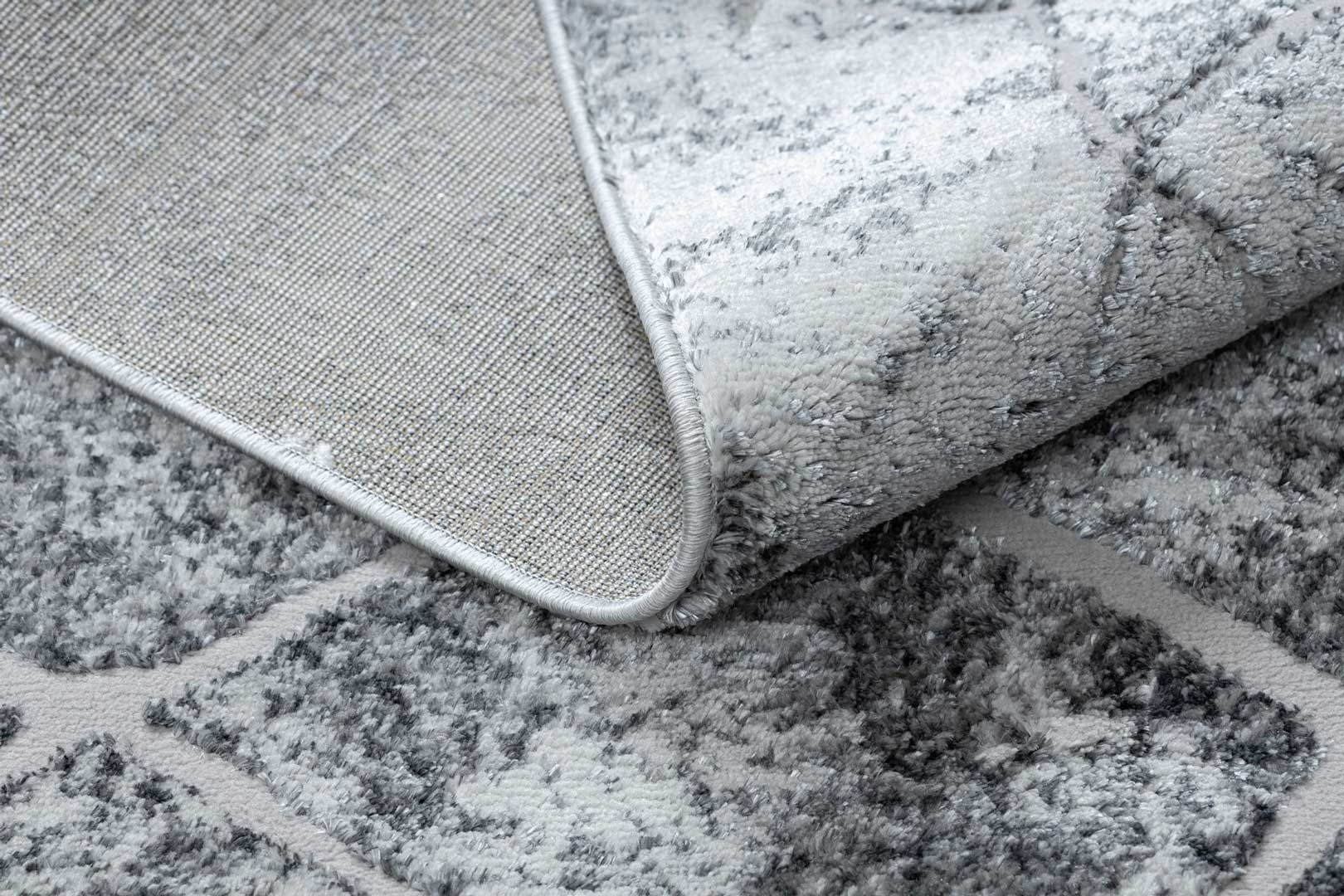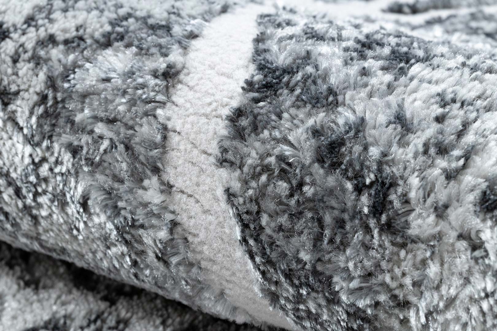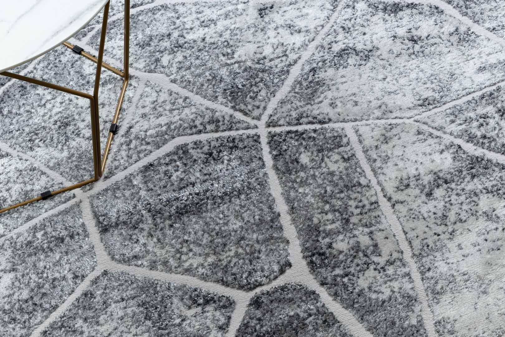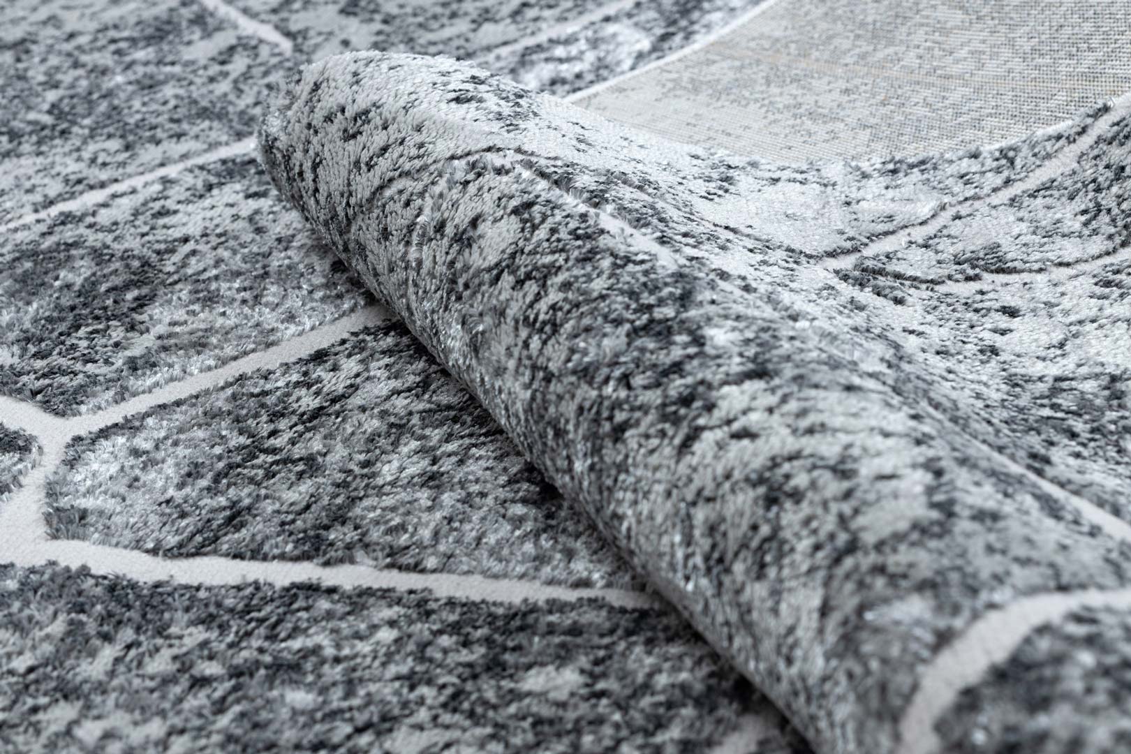 Nowoczesny, strukturalny, ciemnoszary dywan marmurowy z jasnymi pęknięciami