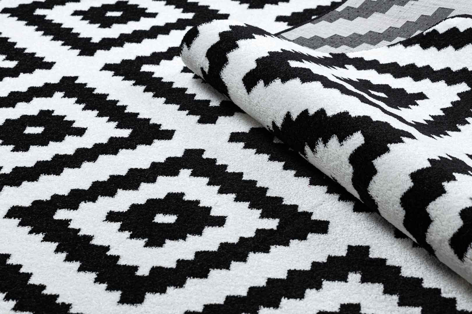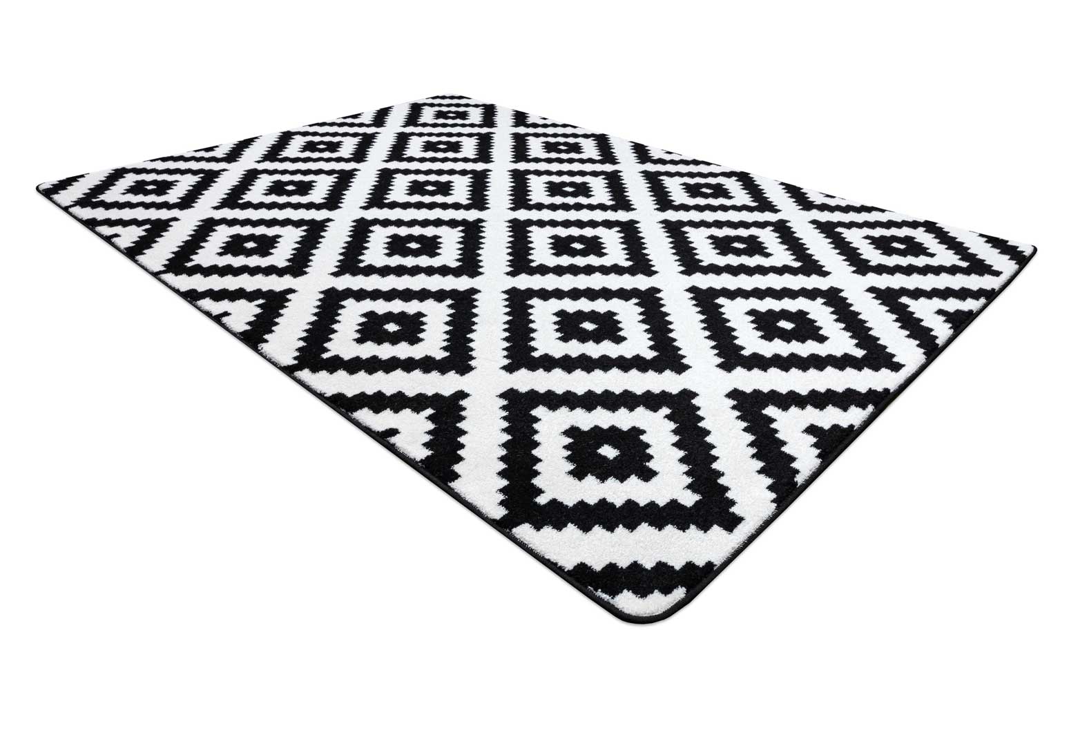 Nowoczesny geometryczny biały dywan w czarne romby kwadraty SKETCH