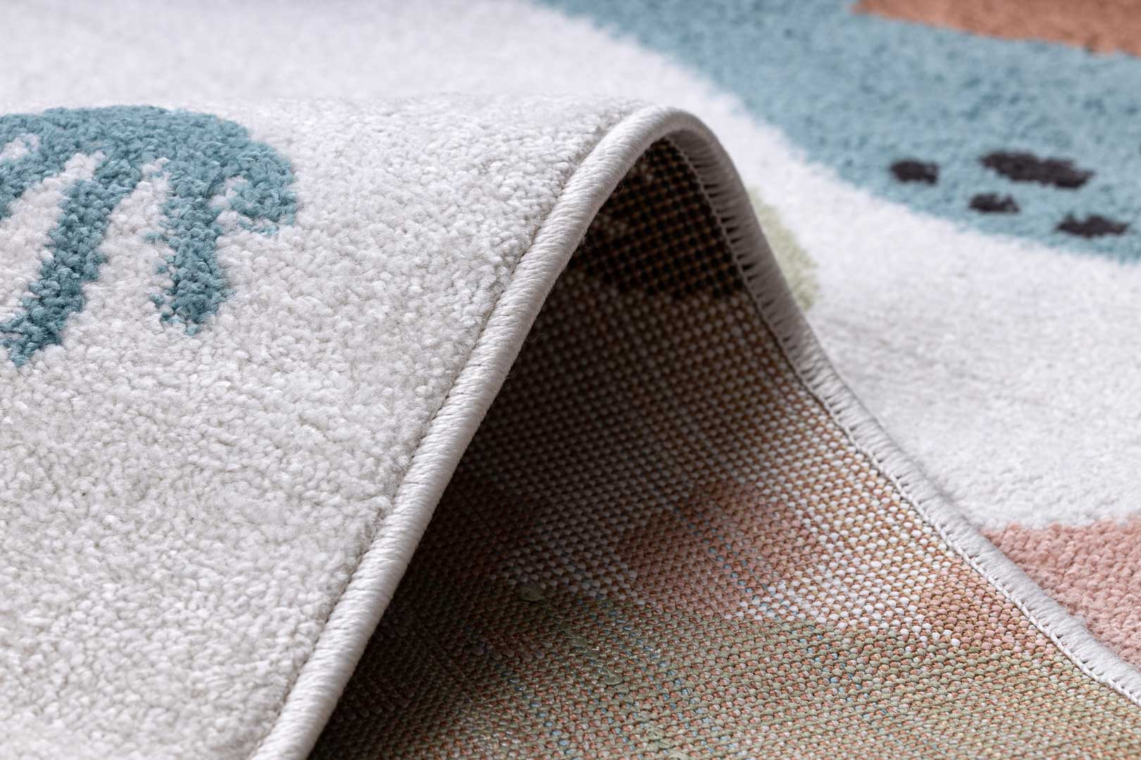 Twój maluszek chce poznawać świat i prehistorię? Dywan w dinozaury może być idealnym dodatkiem do jego ulubionego kącika zabaw! Ten jasny i przyjemny dywan z motywem rysunkowych dinozaurów w pastelowych kolorach będzie się fantastycznie prezentował zarówno w pokoju dziecięcym chłopca jak i dziewczynki. Włókna, z których został uszyty są bardzo miękkie, trwałe oraz bezpieczne dla dzieci, również z alergią. Chronią również skutecznie przed zimnem podłogi.
