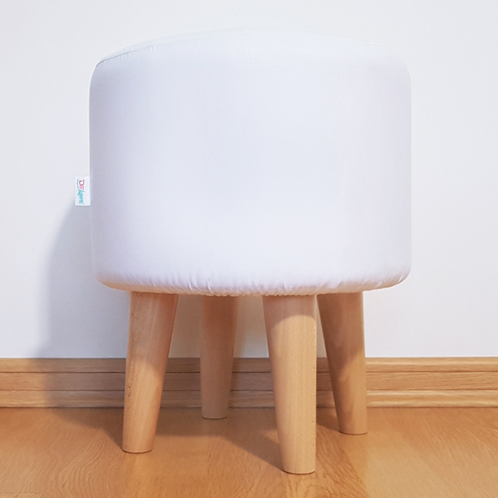 Nowoczesny puf biało czarny, skandynawski taboret dekoracyjny z wygodnym siedziskiem i zdejmowanym pokrowcem z bawełnianej tkaniny ze wzorem: czarne plusy, krzyżyki na białym tle. Do wyboru niski lub wysoki stołek drewniany.
