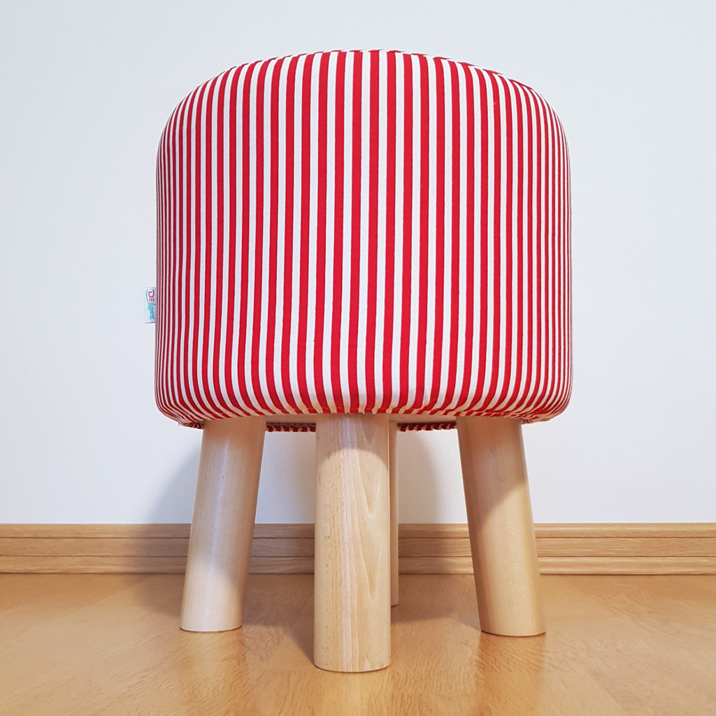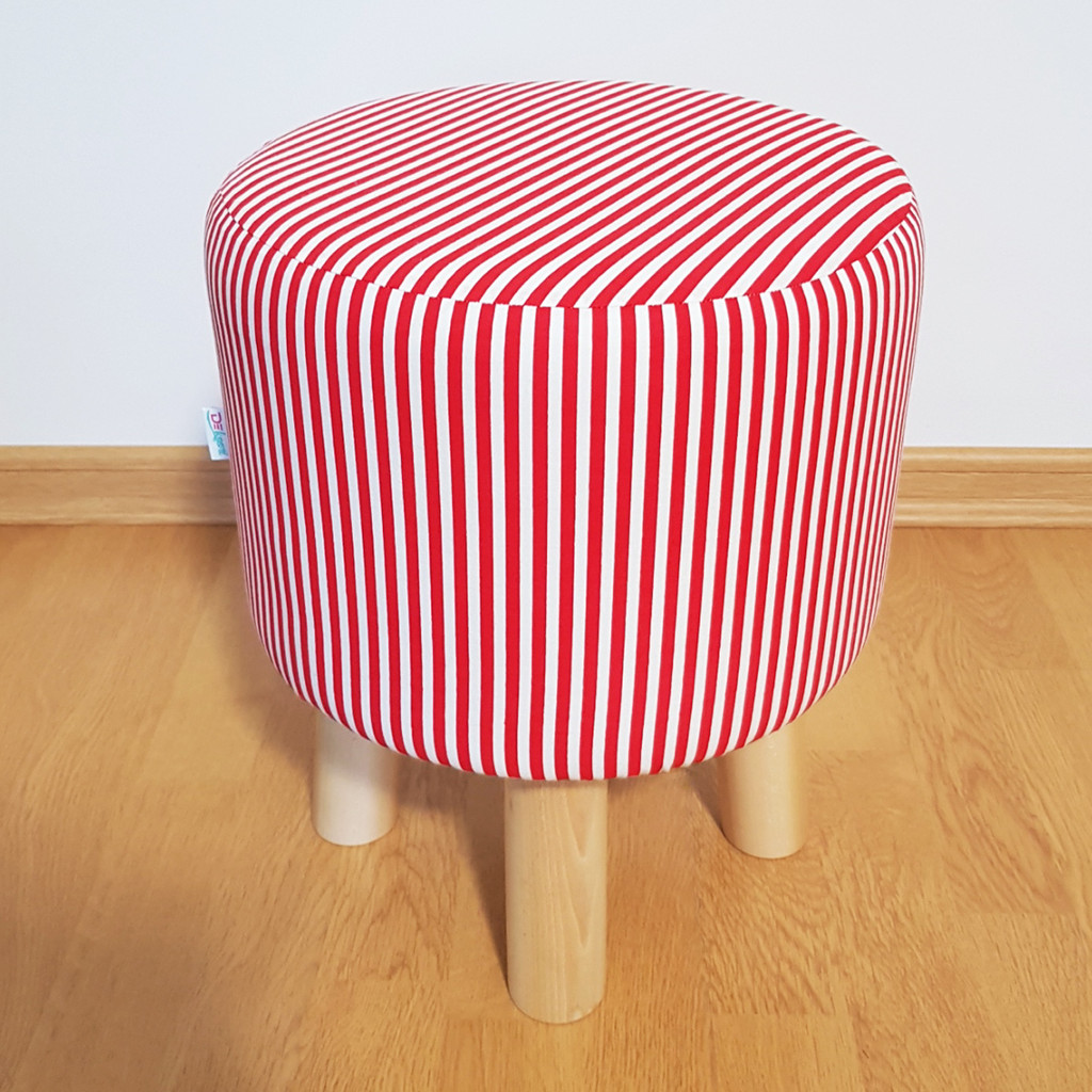 Nowoczesny stołek, puf w paski czerwono-białe vintage design