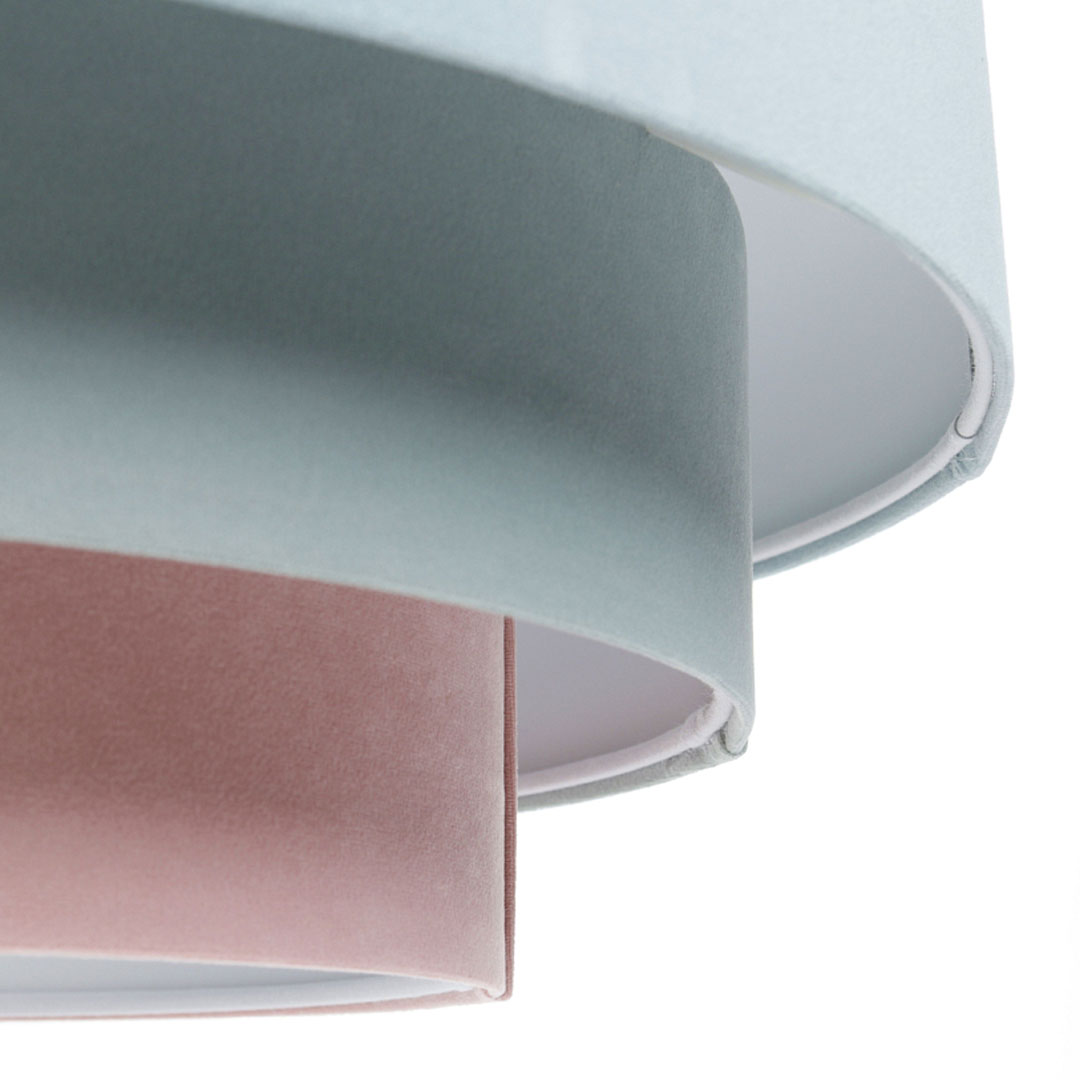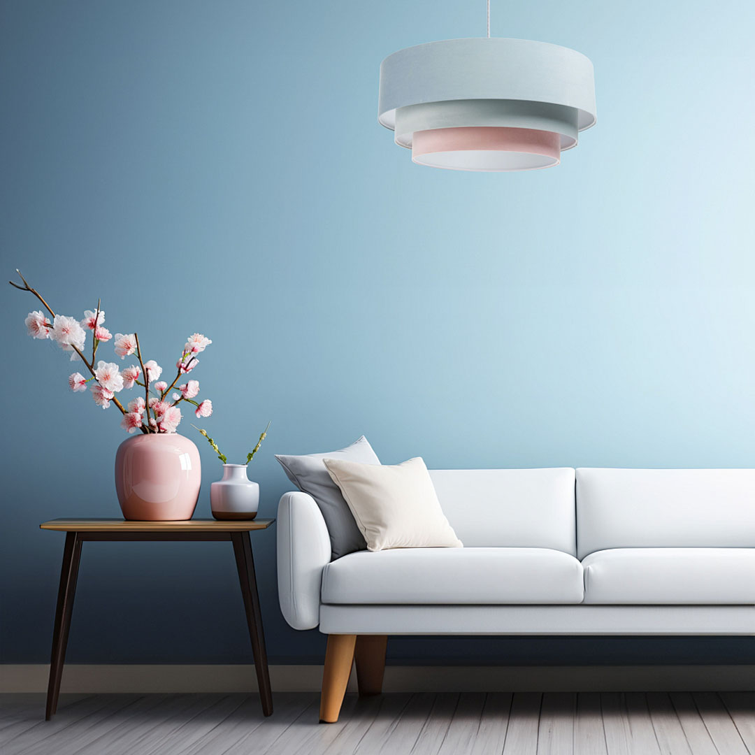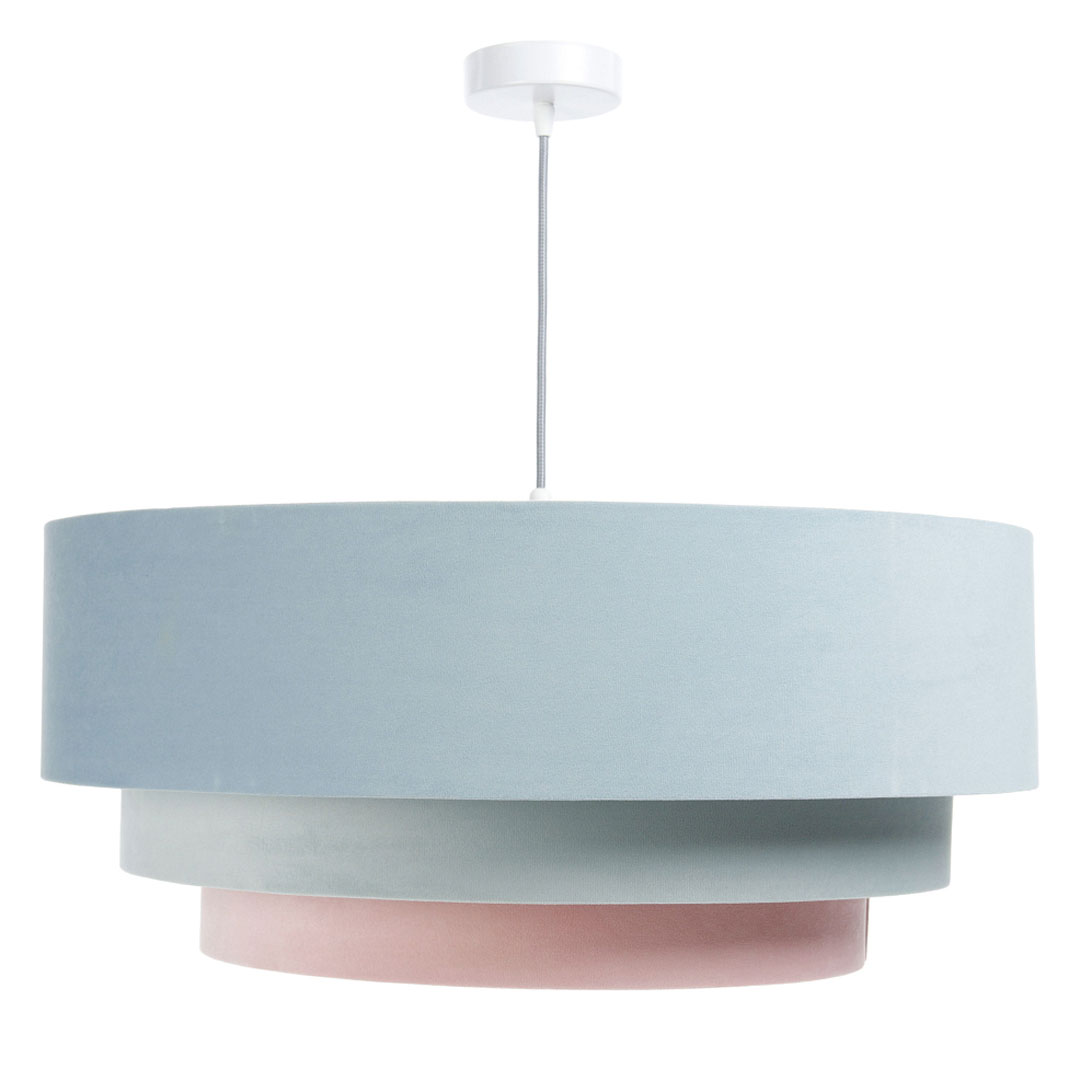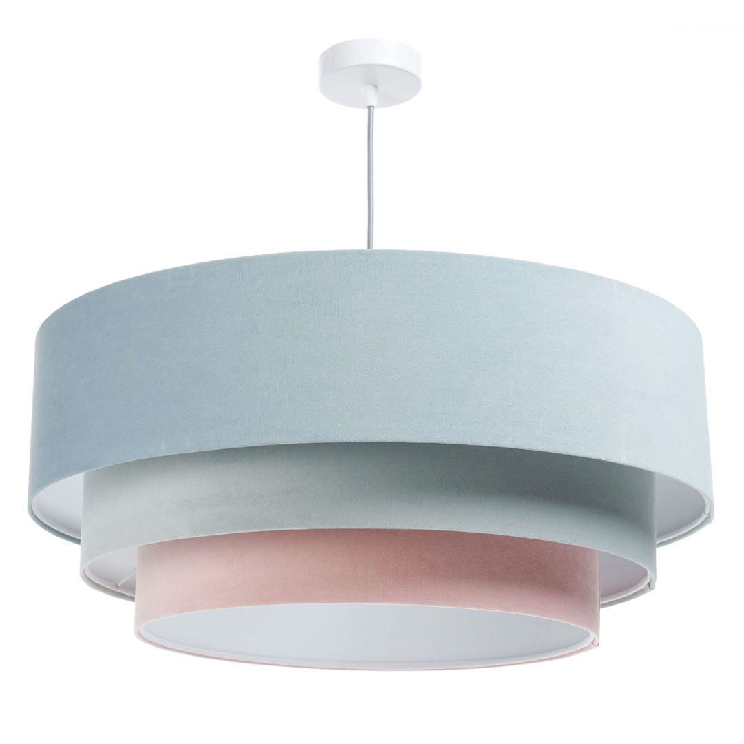 Szukasz oświetlenia, które będzie jednocześnie funkcjonalne i dekoracyjne? Pastelowa lampa wisząca JASMINE BEBE w odcieniach błękitu, mięty i pudrowego różu to propozycja dla osób, które kochają subtelne, jasne wnętrza z nutą romantycznej lekkości. Kaskadowy, potrójny abażur z weluru pięknie rozprasza światło, tworząc w pomieszczeniu przytulny, miękki klimat. 💙