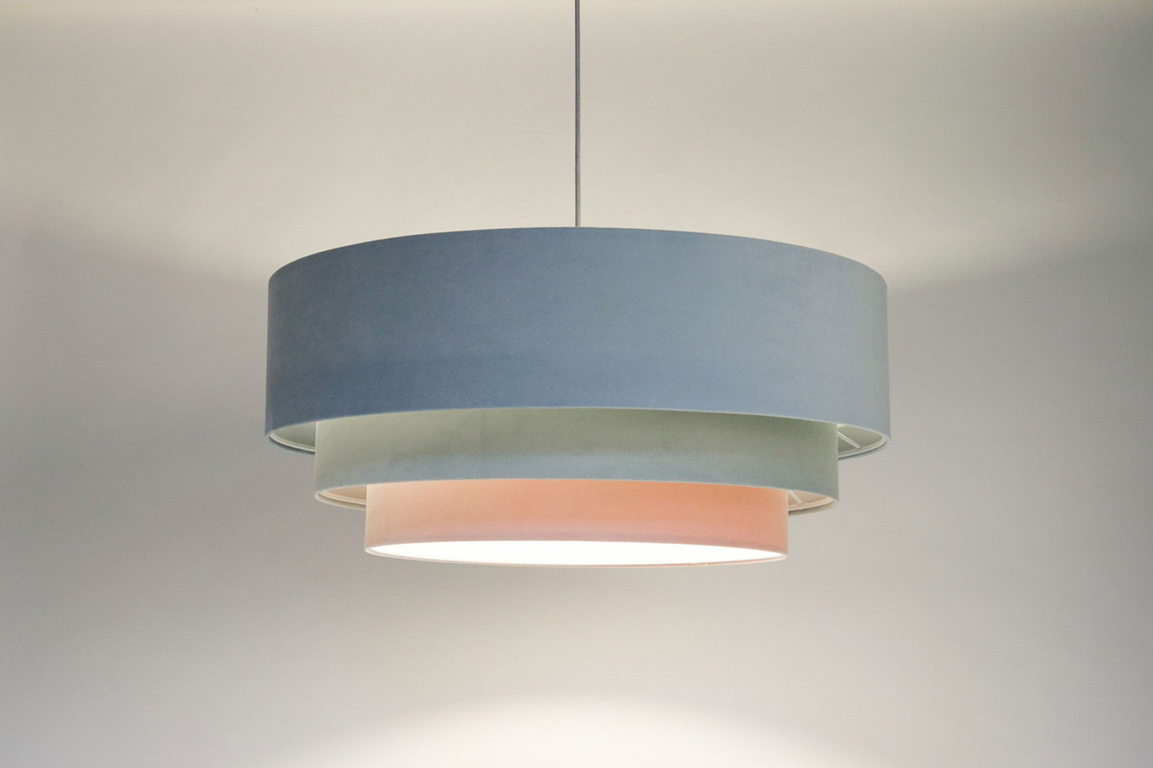 Połączenie trzech pastelowych kolorów sprawia, że lampa staje się wyrazistą, ale nadal delikatną dekoracją.