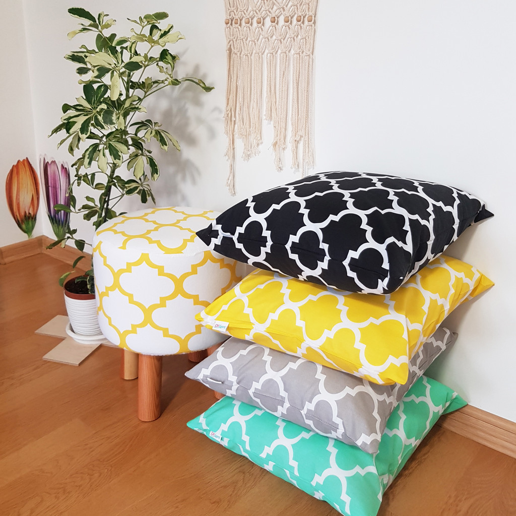 Nowoczesna biała tapeta w bańki, bąbelki, grochy szare, czarne i żółte Style