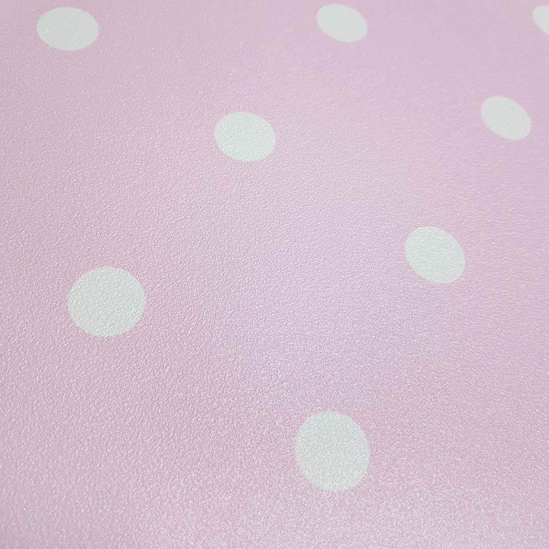 Idealna do wystroju w stylu retro, różowa tapeta ścienna w małe białe kropki. Stylowy, różowy kolor i groszki vintage polka dot. Można ją wykorzystać w niemal każdym pomieszczeniu ale szczególnie pasuje do pokoju nastolatki.