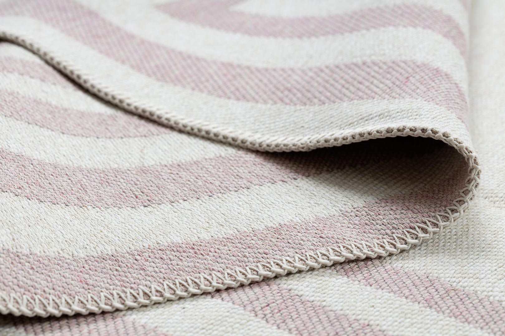 Dywan został wykonany w 100% z bawełny pochodzącej z recyklingu, dzięki czemu jest rozwiązaniem przyjaznym dla środowiska. Płasko tkana, pętelkowa struktura sprawia, że dywan jest lekki, trwały i bardzo łatwy w codziennym utrzymaniu czystości.