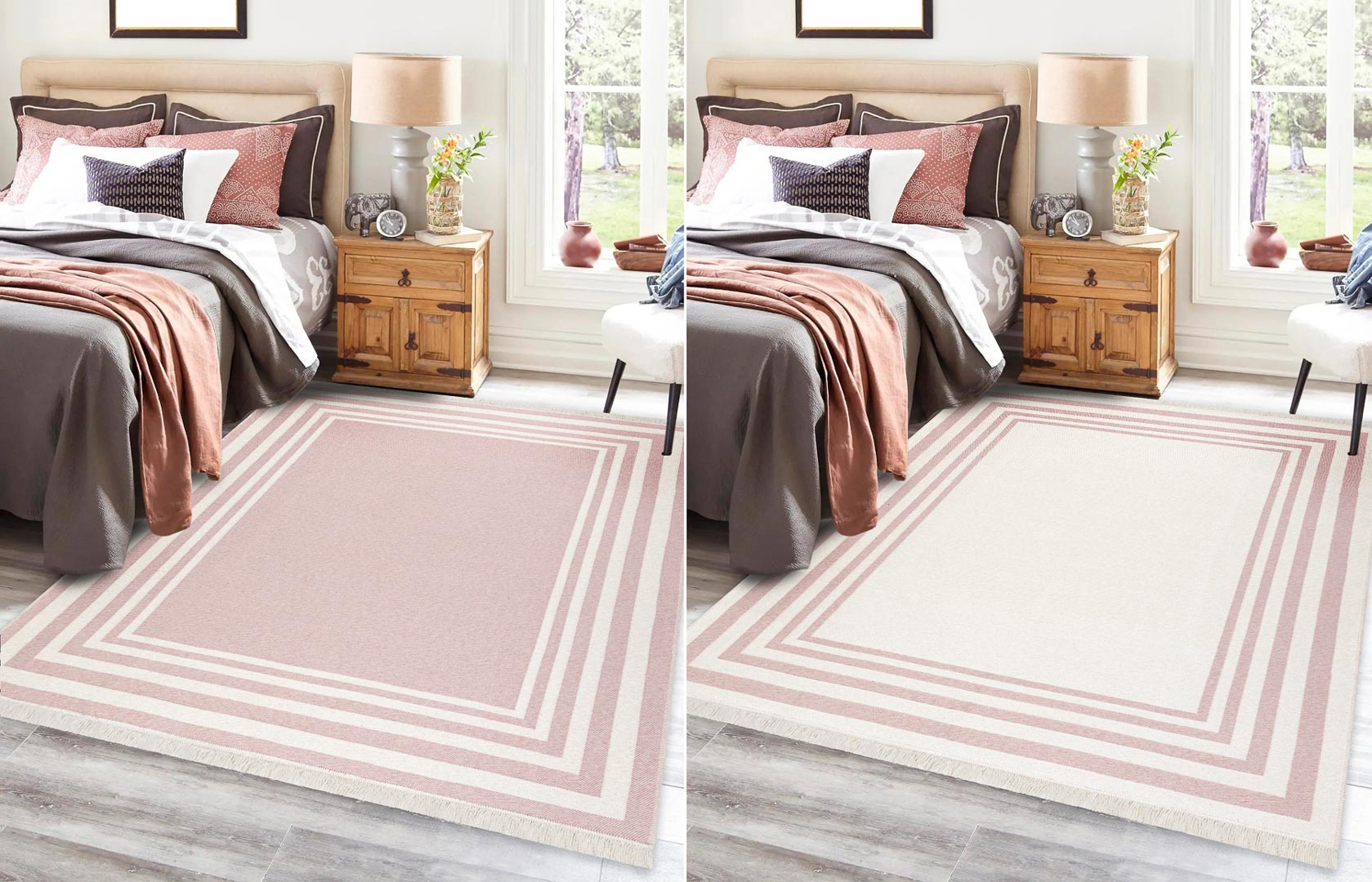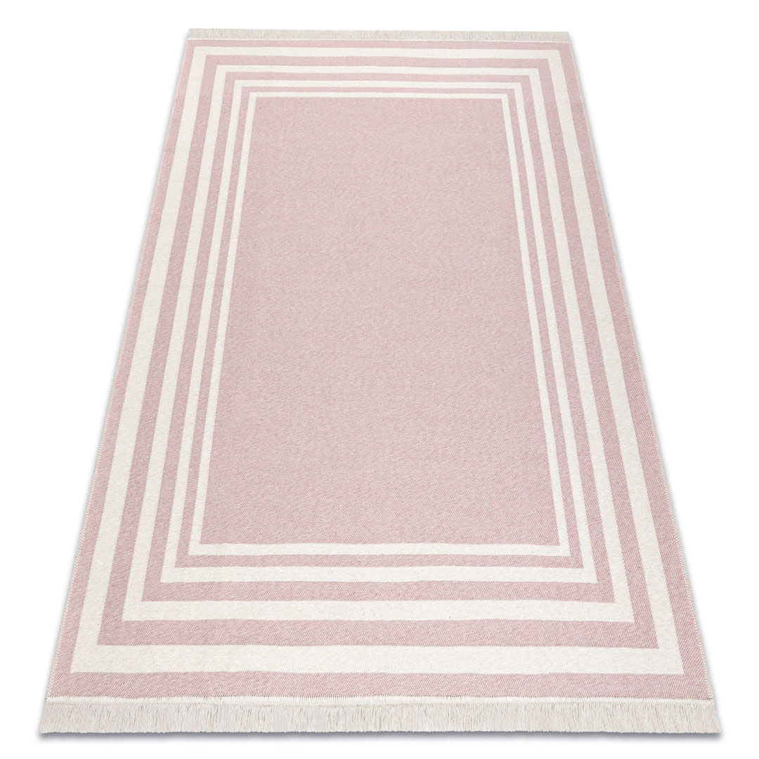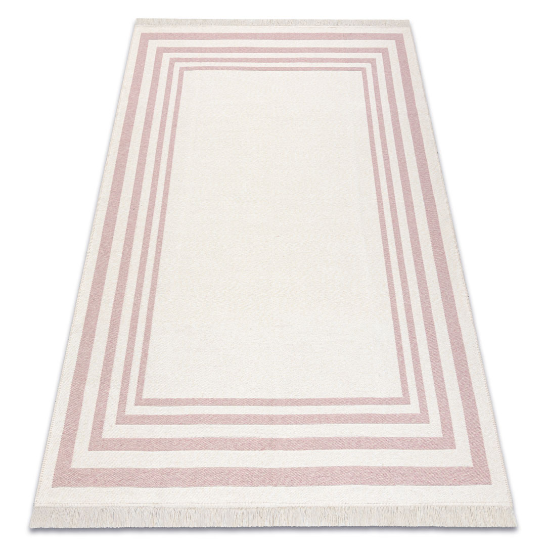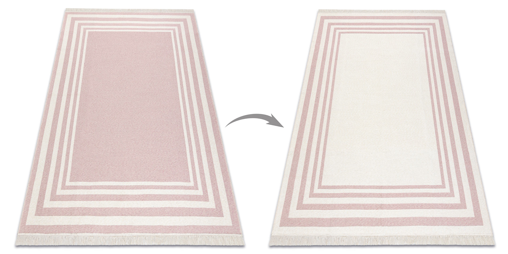 Różowo-kremowy dywan TWIN to połączenie nowoczesnego designu, funkcjonalności i ekologicznych materiałów. Minimalistyczny wzór z elegancką ramką oraz pastelowe zestawienie pudrowego różu i kremu sprawiają, że dywan świetnie komponuje się zarówno z nowoczesnymi, jak i skandynawskimi aranżacjami wnętrz. Doskonale sprawdzi się w salonie, sypialni, przedpokoju czy pokoju dziecięcym, wprowadzając do pomieszczenia przytulny klimat i stylowy akcent.