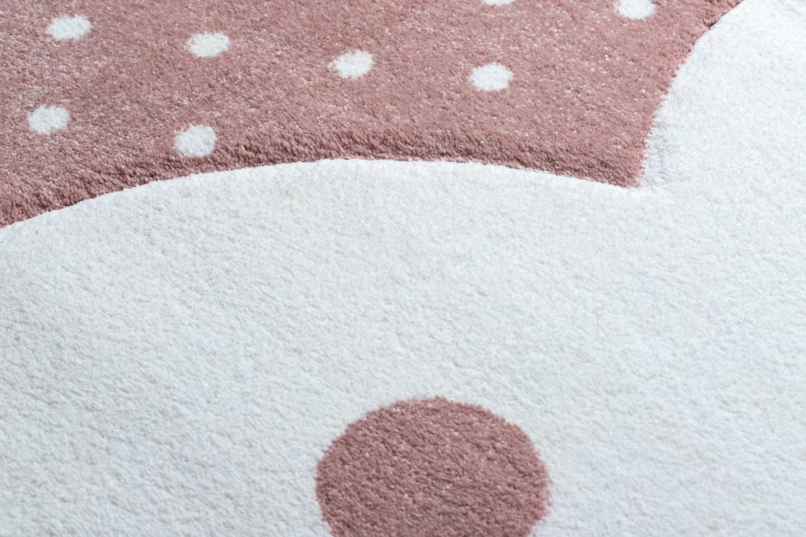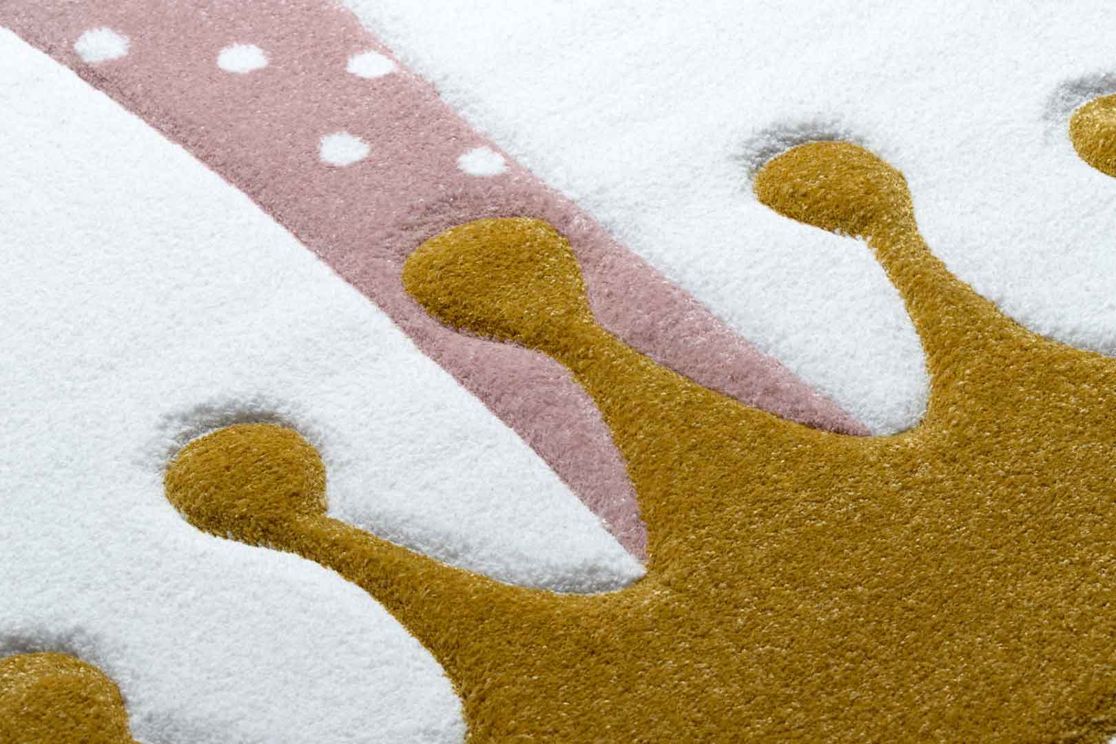 Ten uroczy, różowy dywan dla dziewczynki ze słodkim białym króliczkiem w koronie zachwyci niejednego maluszka! Na pewno będzie on świetnym dodatkiem do kącika zabaw, szczególnie do pokoju dziewczynki. Stworzy również przyjazny, wręcz bajkowy klimat w każdym dziecięcym pokoiku. Polipropylen z dodatkiem włókien heat set frise gwarantują miękkość, wysoką jakość i trwałość oraz bezpieczeństwo dla dzieci z alergią i nie tylko.