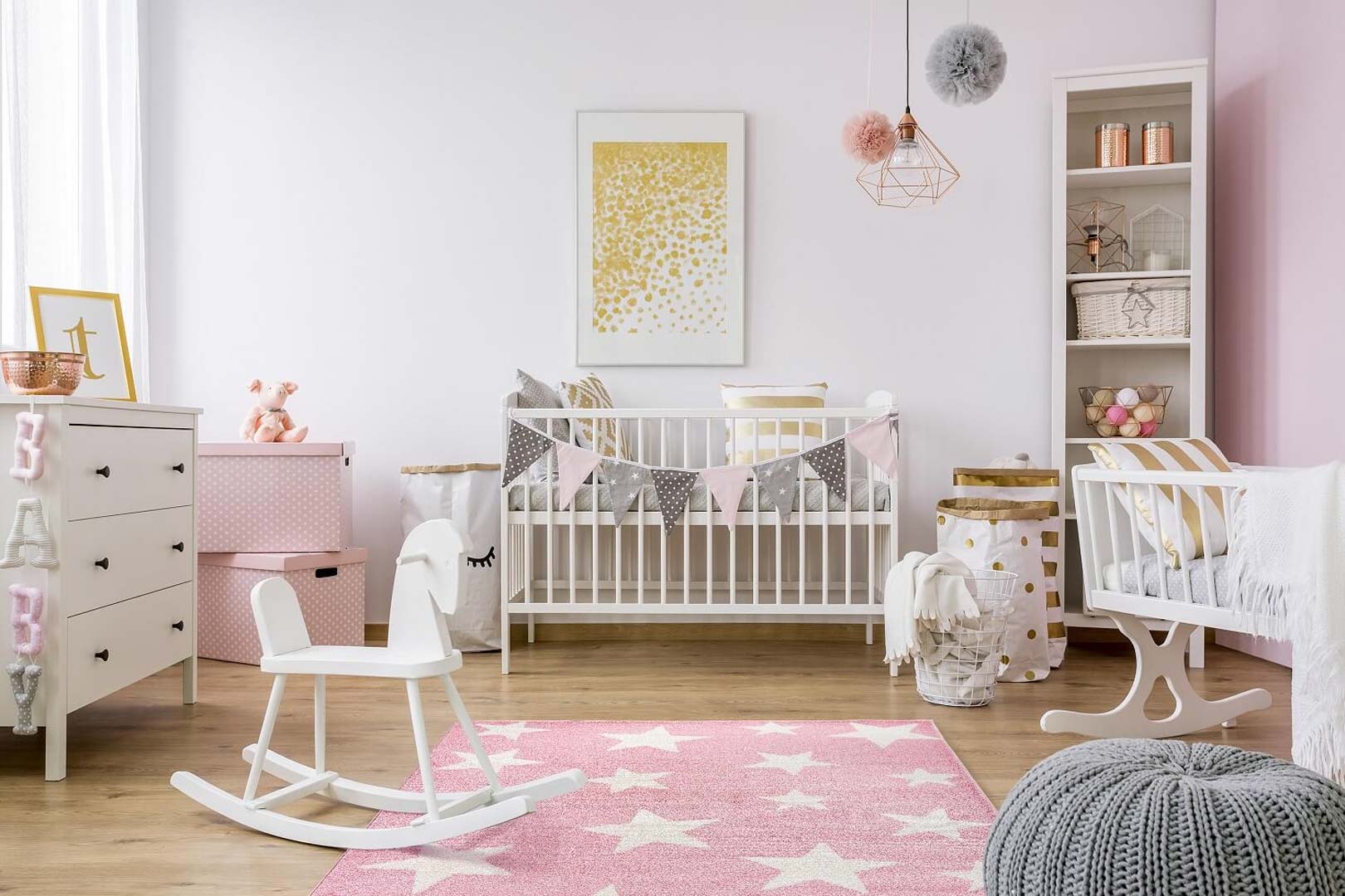 Różowy dywan dziecięcy w kremowe gwiazdki Pink Night dla dziewczynki