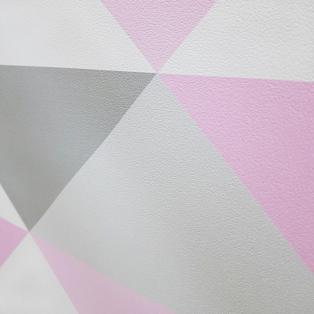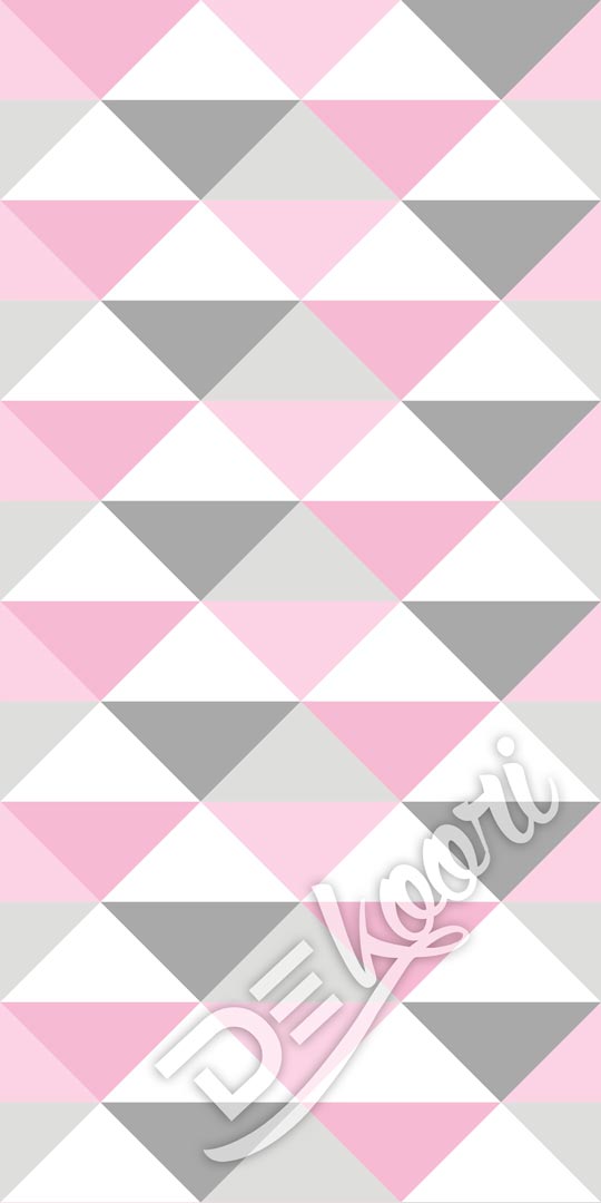Tapeta ścienna w pastelowe trójkąty biało-szaro-różowe o szerokości 33 cm w stylu skandynawskim.