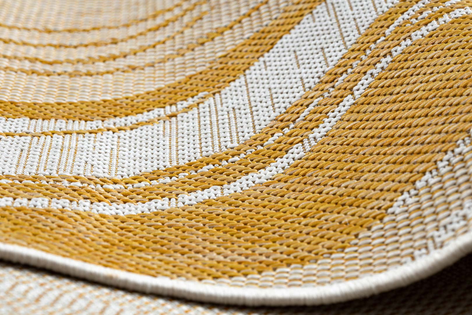 Sznurkowy musztardowo-biały dywan do salonu, dywan marmur, na balkon i taras - SION