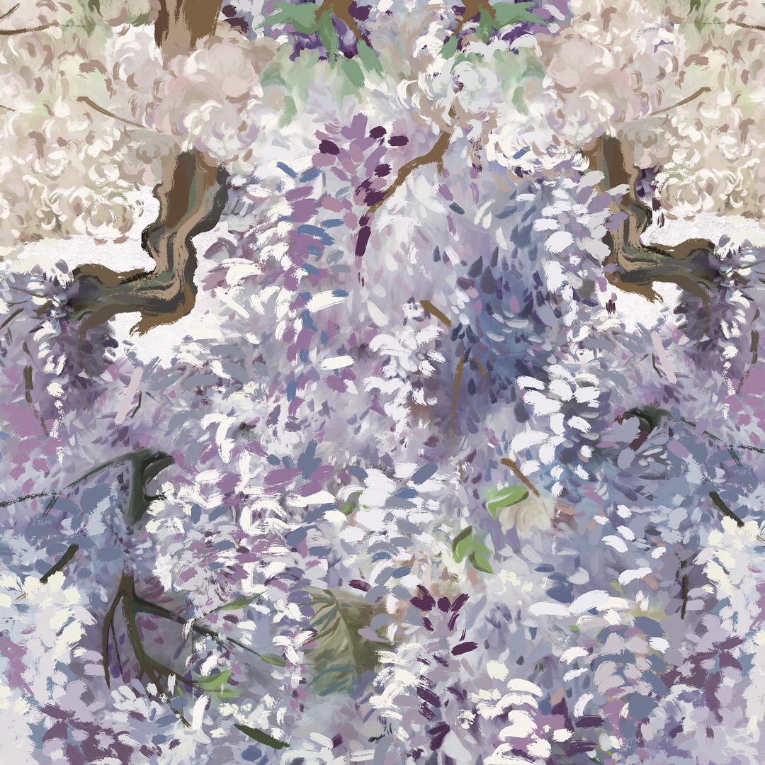 Motyw wisterii wprowadza do wnętrza lekkość, spokój i romantyczny klimat, jednocześnie doskonale wpisując się w nowoczesne, minimalistyczne aranżacje. Tapeta sprawdzi się idealnie jako dekoracyjna ściana w salonie, sypialni, jadalni, gabinecie, a także w przestrzeniach komercyjnych – hotelach, butikach czy stylowych kawiarniach.