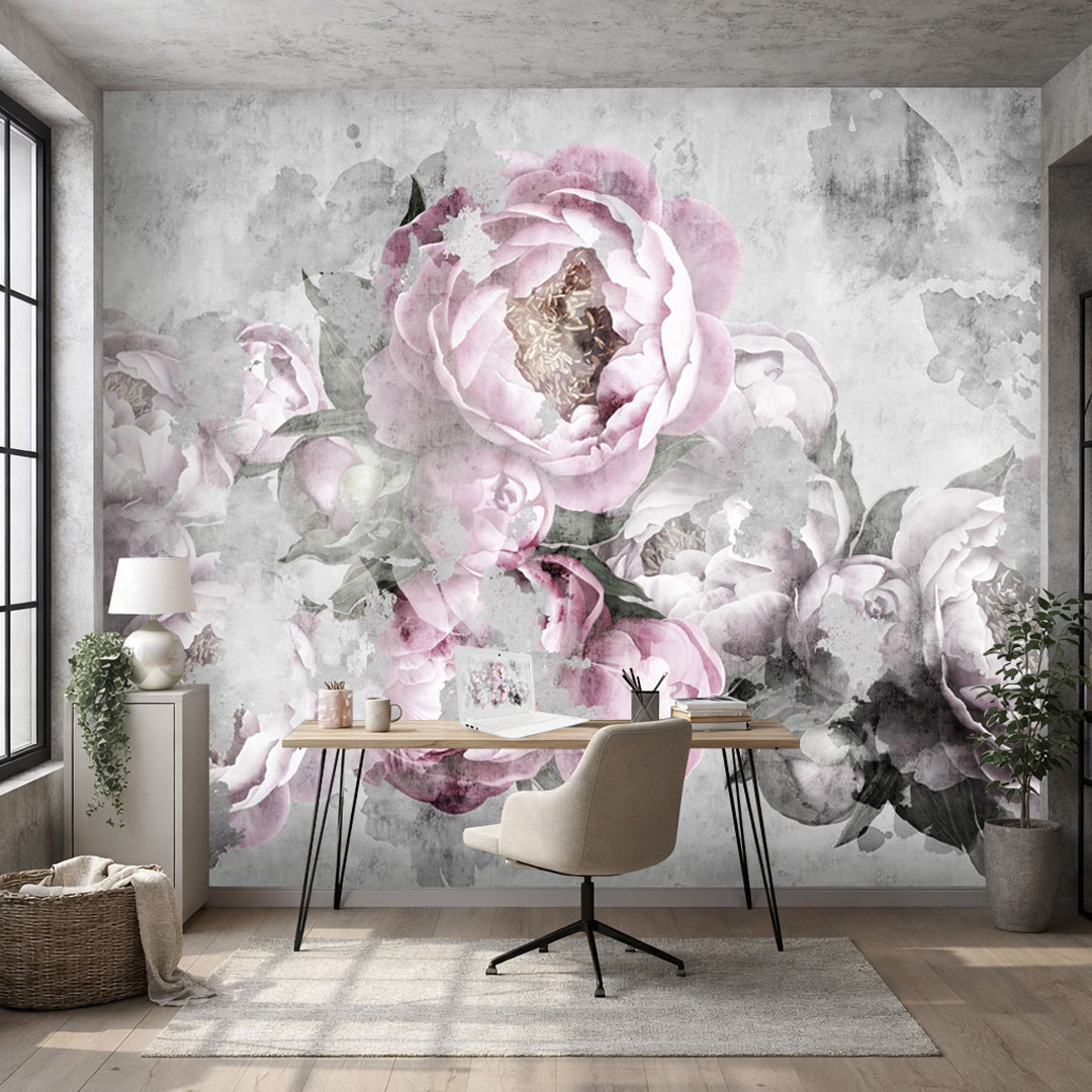 Tapeta PIWONIE NA BETONIE to wyjątkowe połączenie surowości betonu z delikatnością kwiatów piwonii. Duże, akwarelowe kwiaty w pudrowo-różowej tonacji subtelnie przenikają się z chłodnym, szarym tłem inspirowanym betonową strukturą, tworząc harmonijną i bardzo nowoczesną kompozycję. To idealna propozycja dla osób, które cenią styl loftowy, ale chcą nadać wnętrzu przytulności i elegancji.