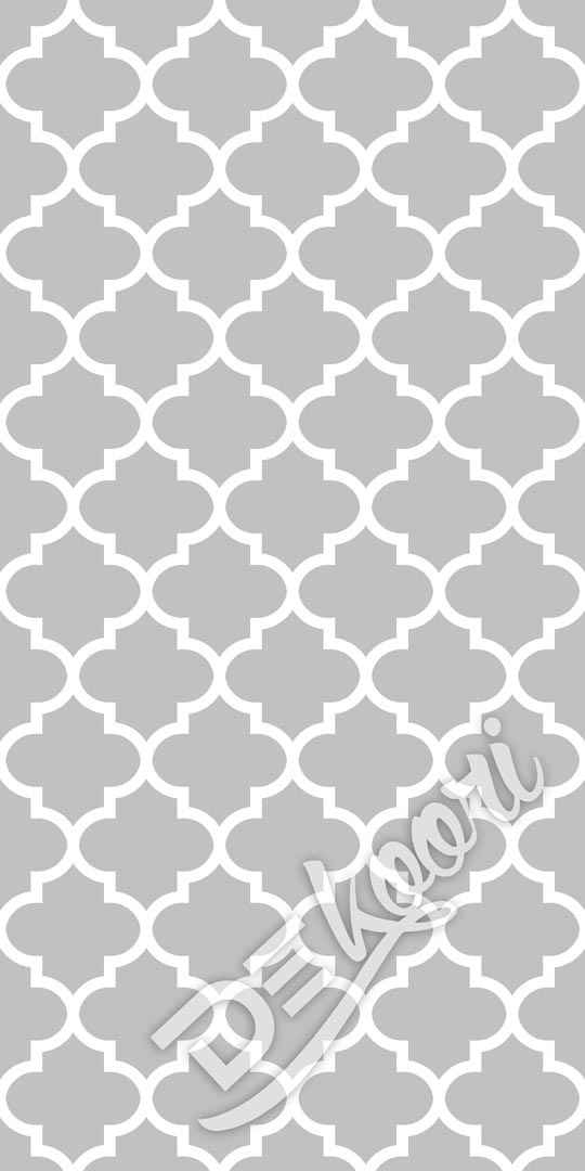 Ozdobna, ścienna, szaro-biała tapeta Marokańska Koniczyna ze stylowym wzorem, ornamentem. Sprawdź pozostałe tapety na ścianę.
