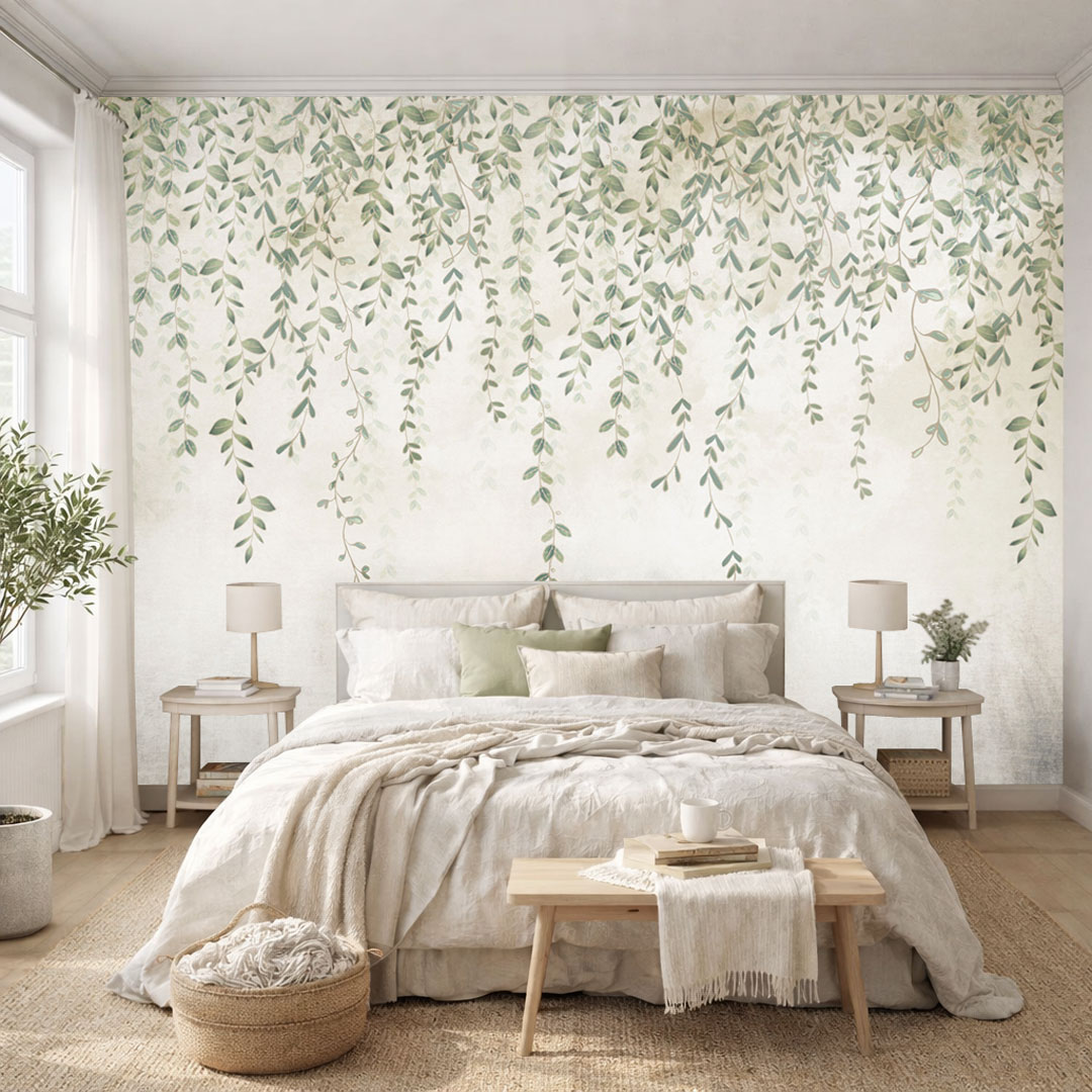 Tapeta roślinna z zielonymi zwisającymi listkami to propozycja dla osób, które cenią harmonię, naturalność i ponadczasowy styl nordycki. Delikatny wzór inspirowany naturą wprowadza do wnętrza spokój i przytulną atmosferę, jednocześnie pozostając lekki i nowoczesny. 🌿