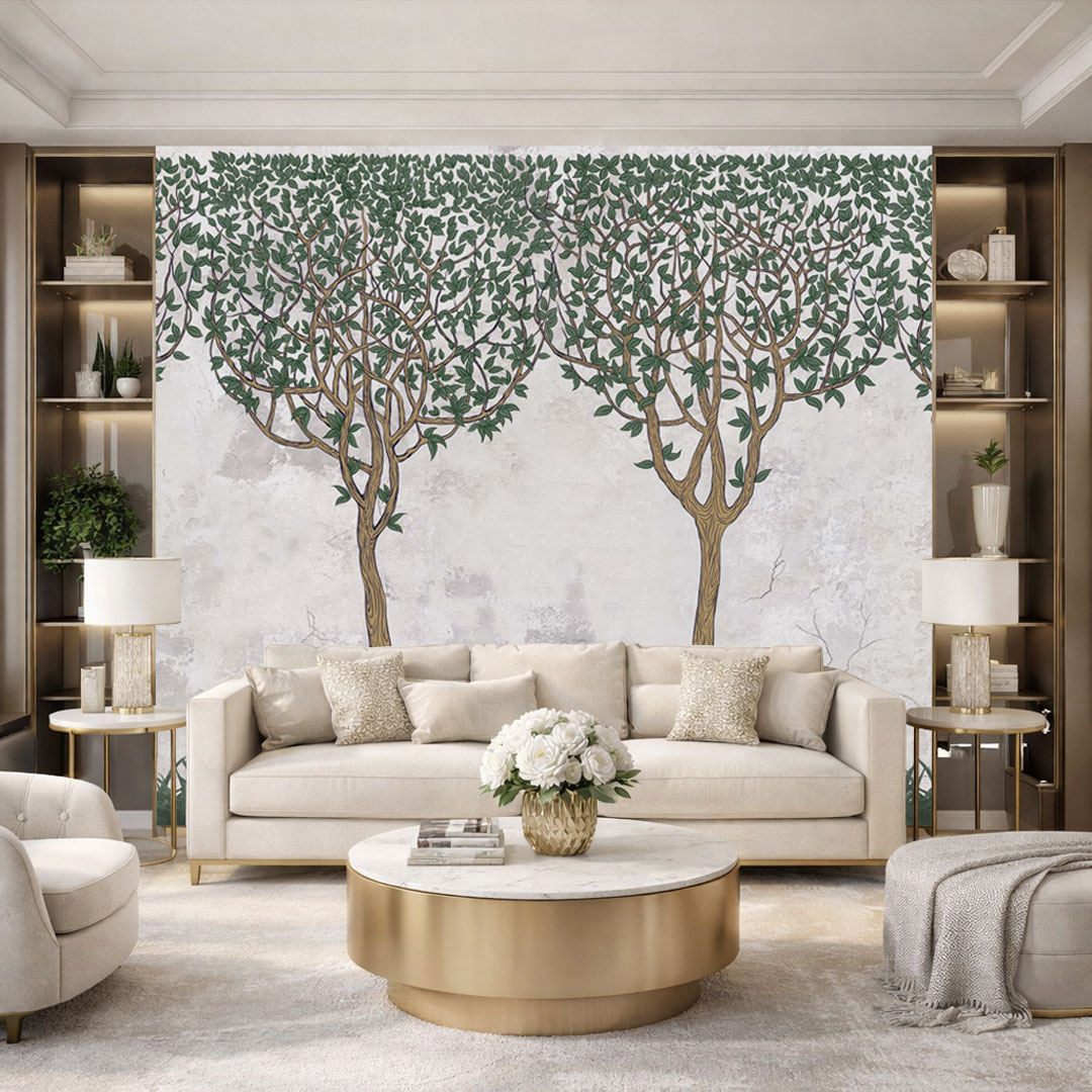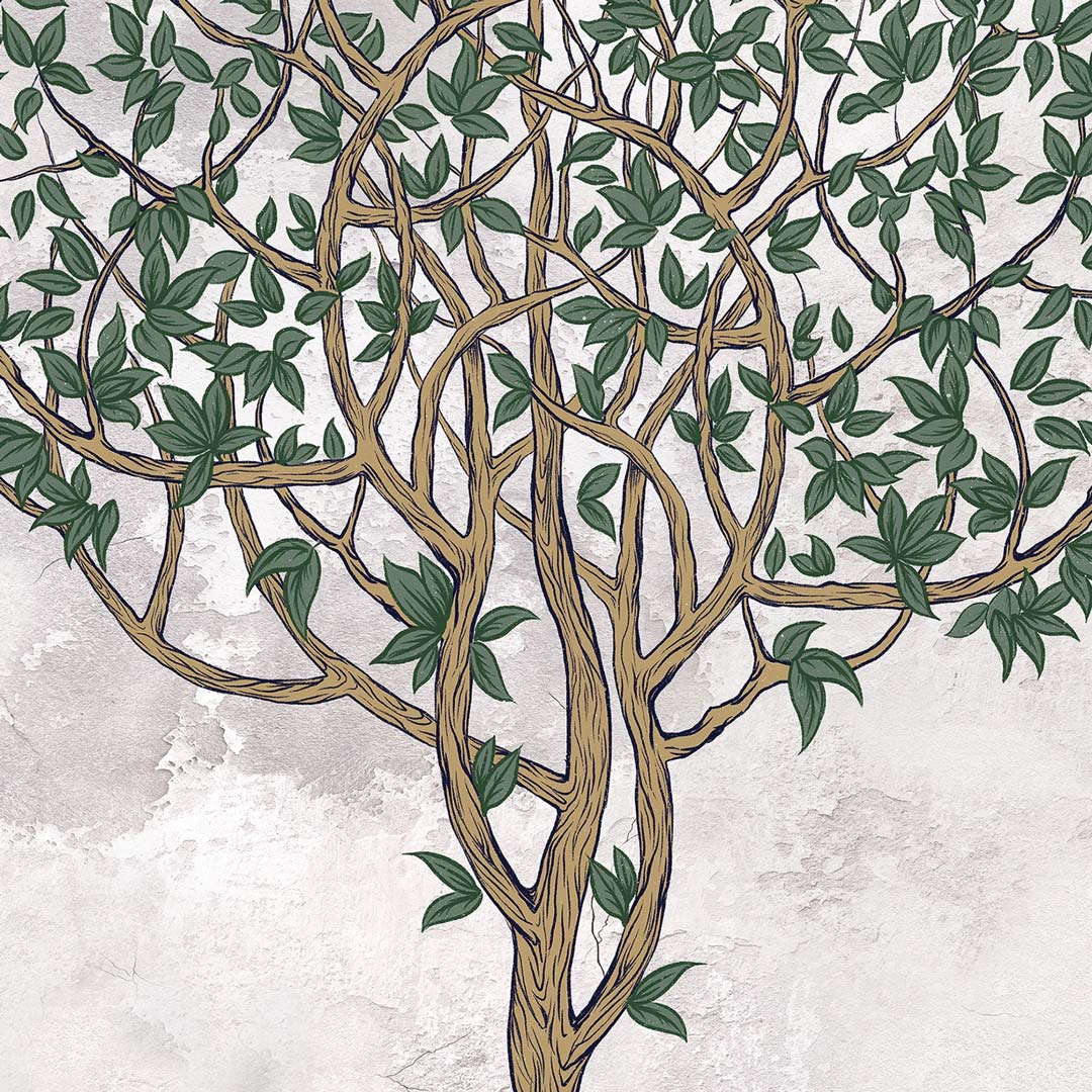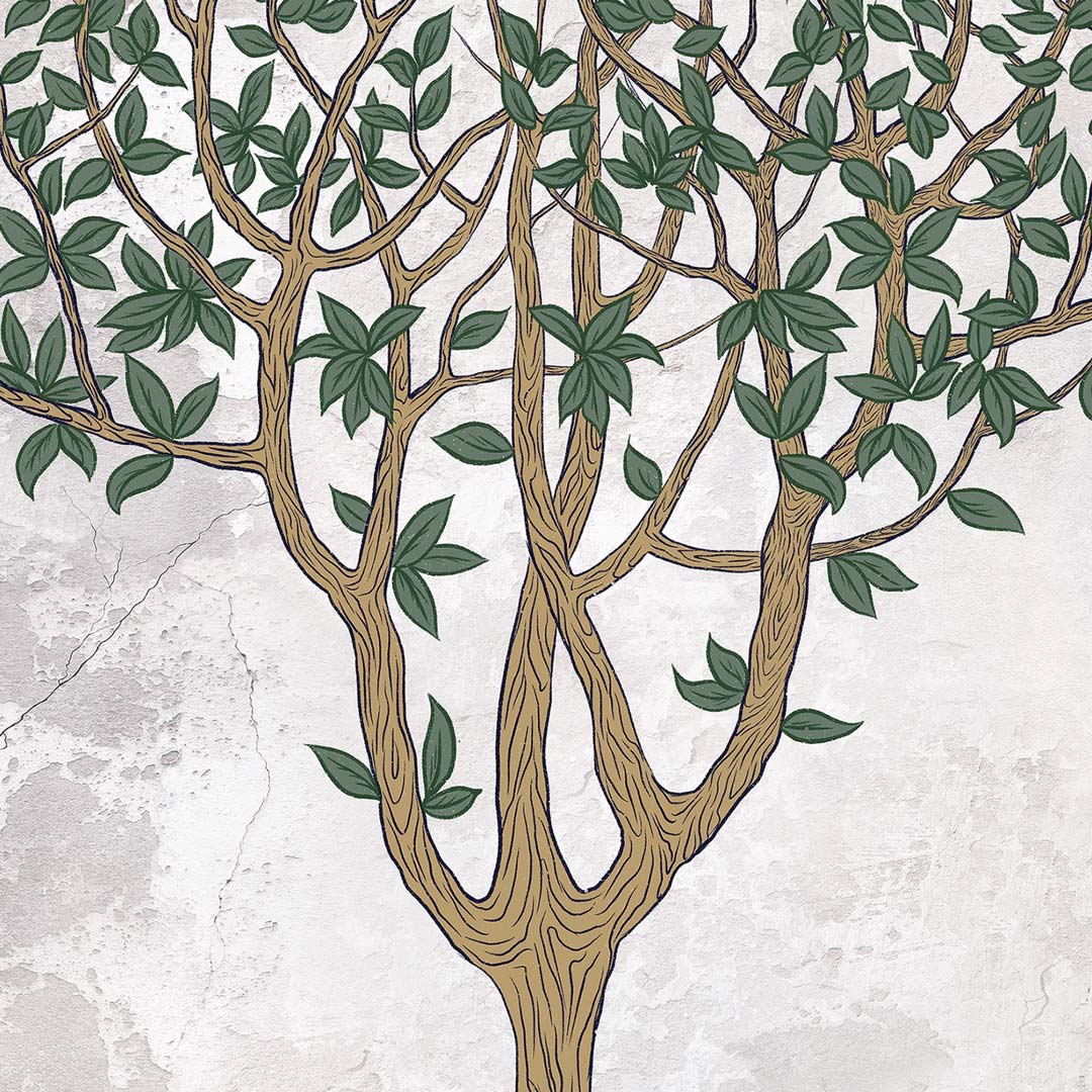 Tapeta ścienna TUSCULUM to wyjątkowa dekoracja inspirowana klasycznymi rzymskimi ogrodami, w których drzewa laurowe symbolizowały harmonię, prestiż i ponadczasowe piękno. Subtelnie ilustrowane, zielone korony drzew kontrastują z chłodnym, betonowym szarym tłem, tworząc wyrafinowane połączenie natury i architektonicznej surowości.