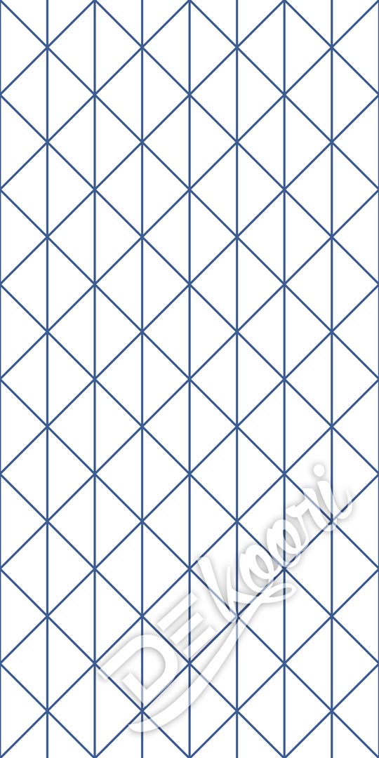 Niepowtarzalna biała tapeta na ścianę w nowoczesny wzór - trójkąty i linie - w modnym kolorze Classic Blue. Kolor ten został wybrany przez markę PANTONE kolorem 2020 roku. Tapeta idealnie nada się do pokoju dziennego, jak i sypialni czy kuchni.