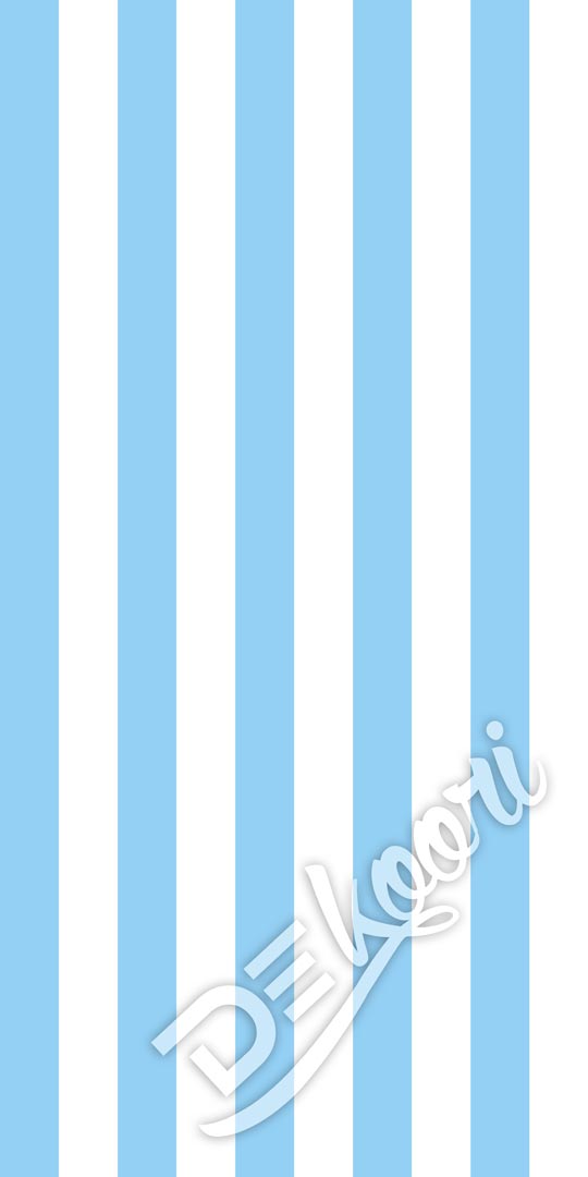 Ścienna tapeta w biało-niebieskie paski pionowe. Uniwersalna ale wyjątkowo pasuje do pokoju dziecięcego dla chłopca.
