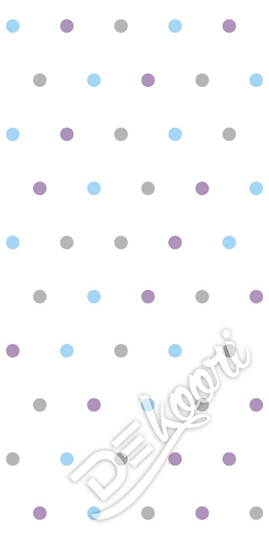 Tapeta w szare, niebieskie i fioletowe kropki, groszki, grochy 5 cm