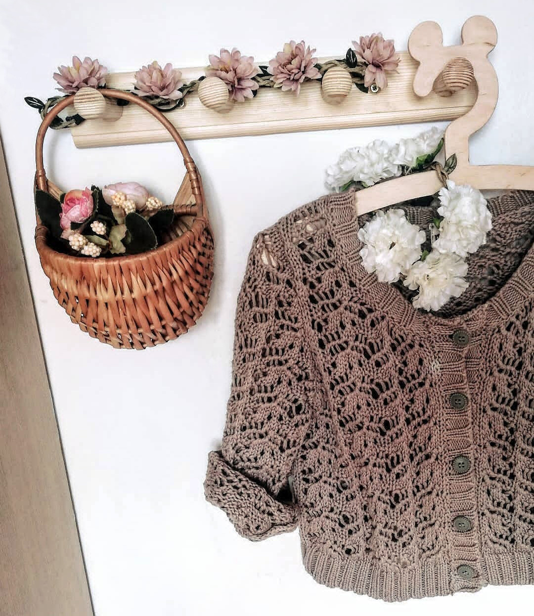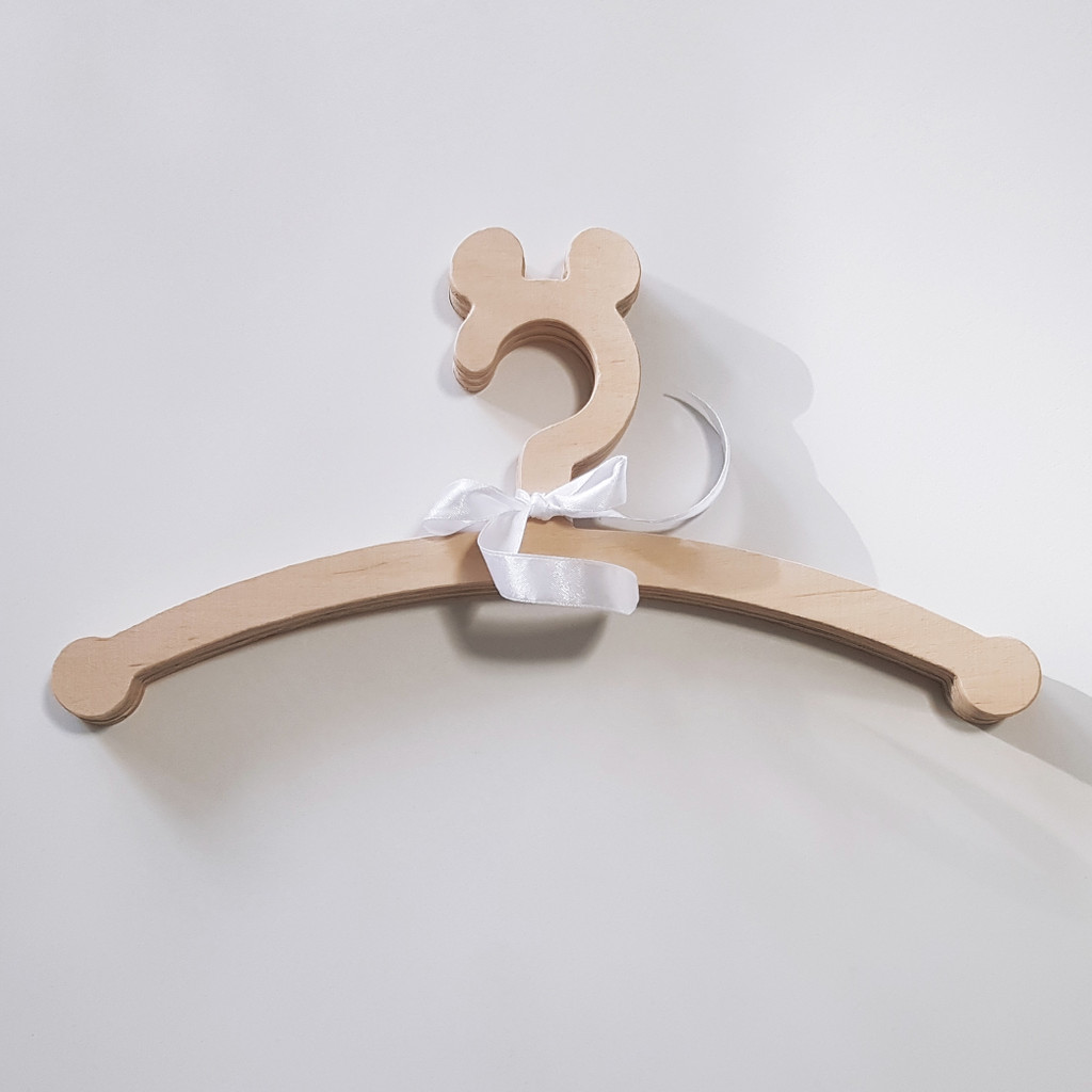 Cudne, drewniane wieszaki dziecięce z uszami misia lub myszki miki. Idealne na ubrania dla dzieci, niemowlęce oraz do zabawy w dom. W komplecie 3 wieszaczki.