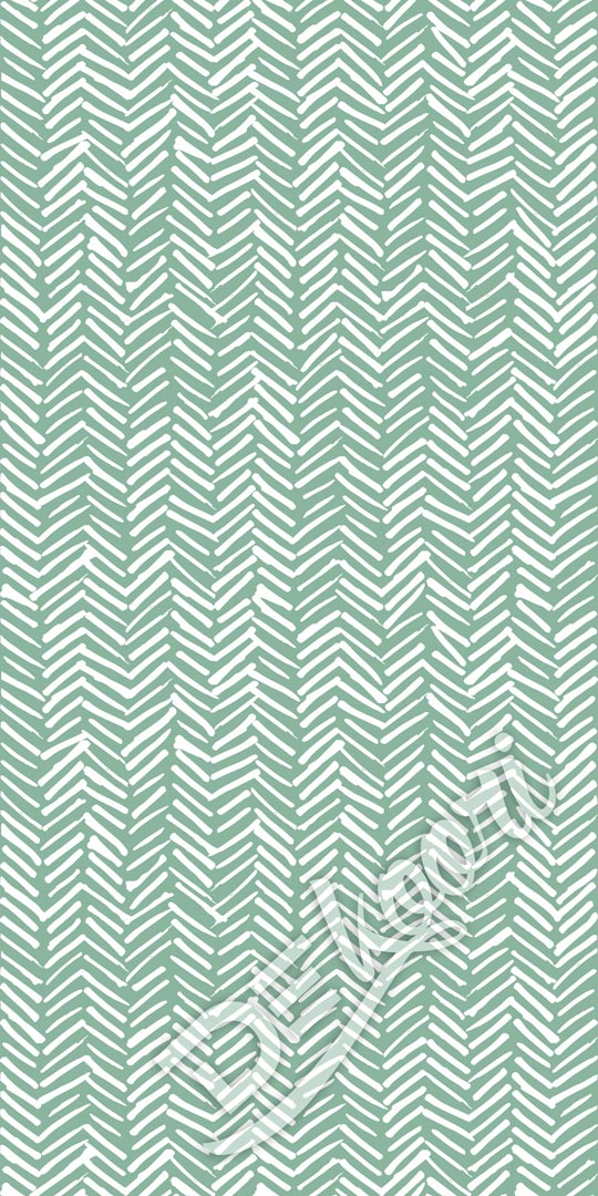 Zielona tapeta na ścianę w białe kreski, wzór jodełka, w stylu boho