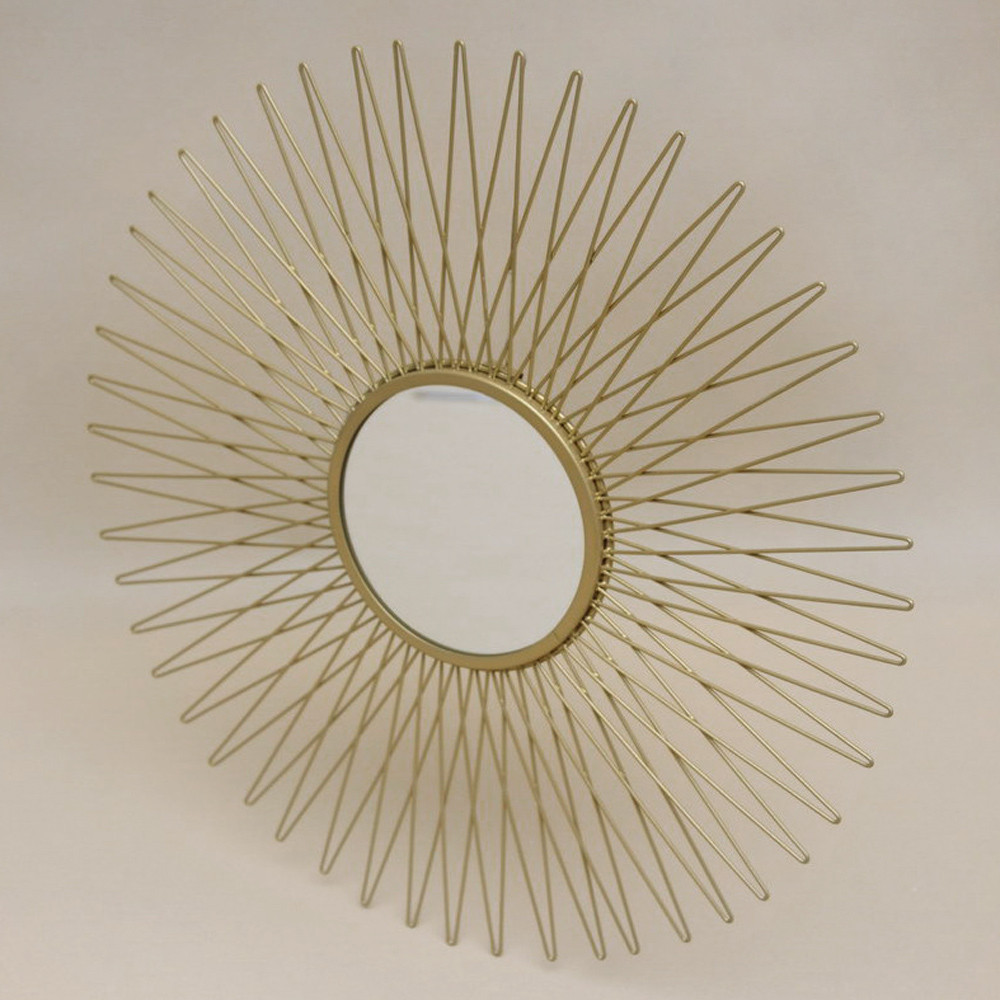 Złote metalowe lustro na ścianę w kształcie słońca w skandynawskim stylu