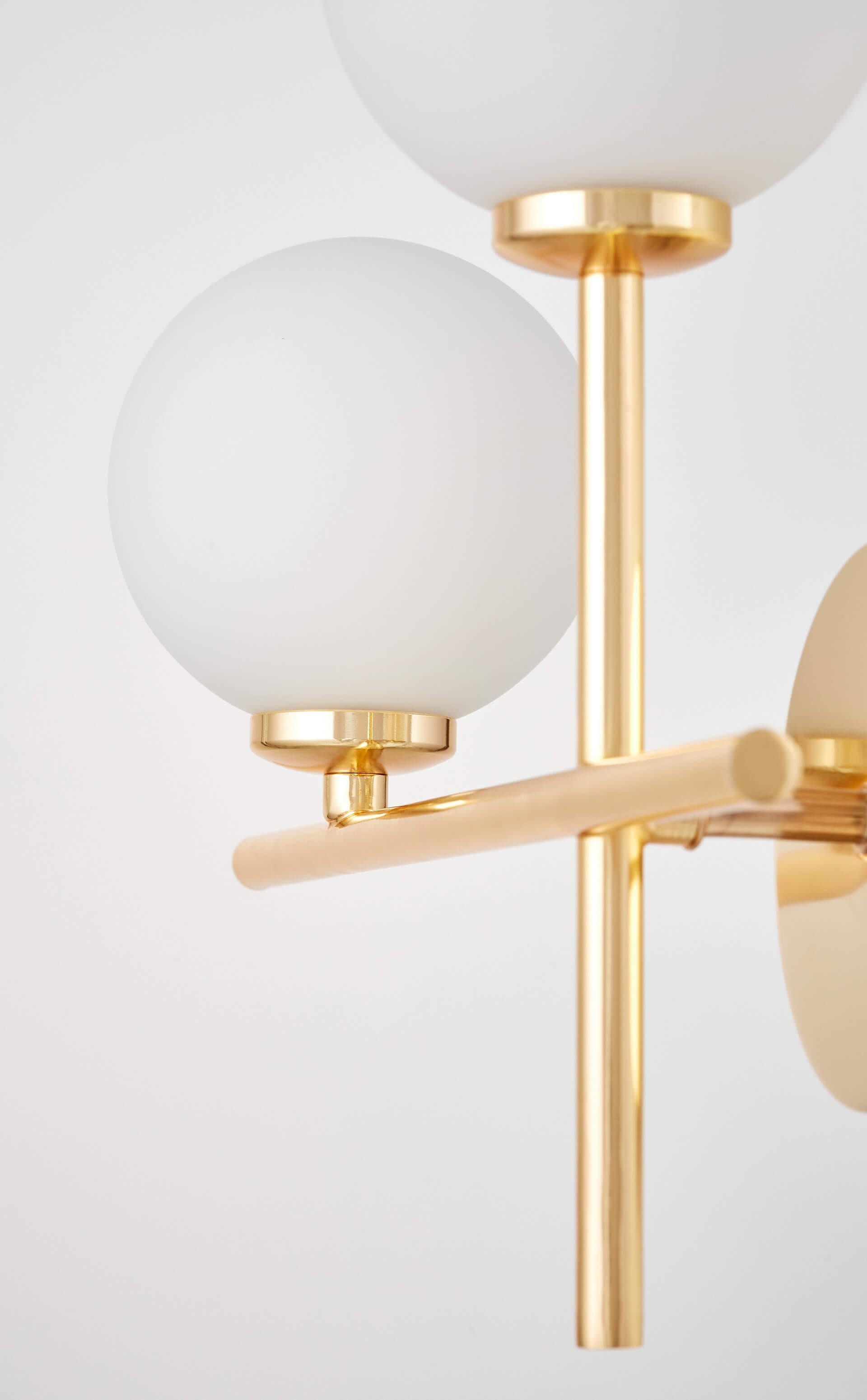 Złoty, elegancki kinkiet z białymi kulistymi kloszami MARSIADA NEO