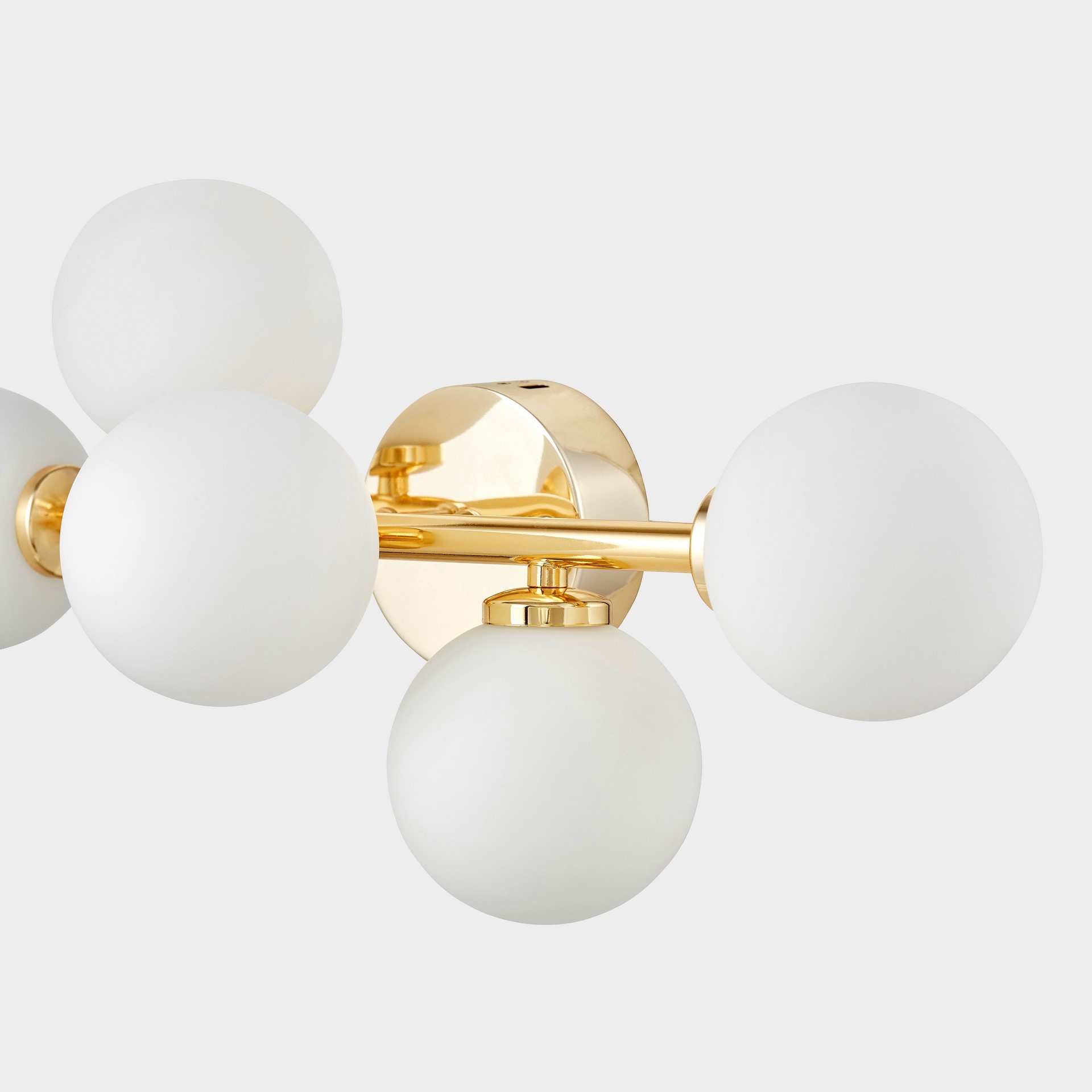 Złoty kinkiet glamour z białymi, szklanymi kloszami, francuskie złoto - MARSIADA