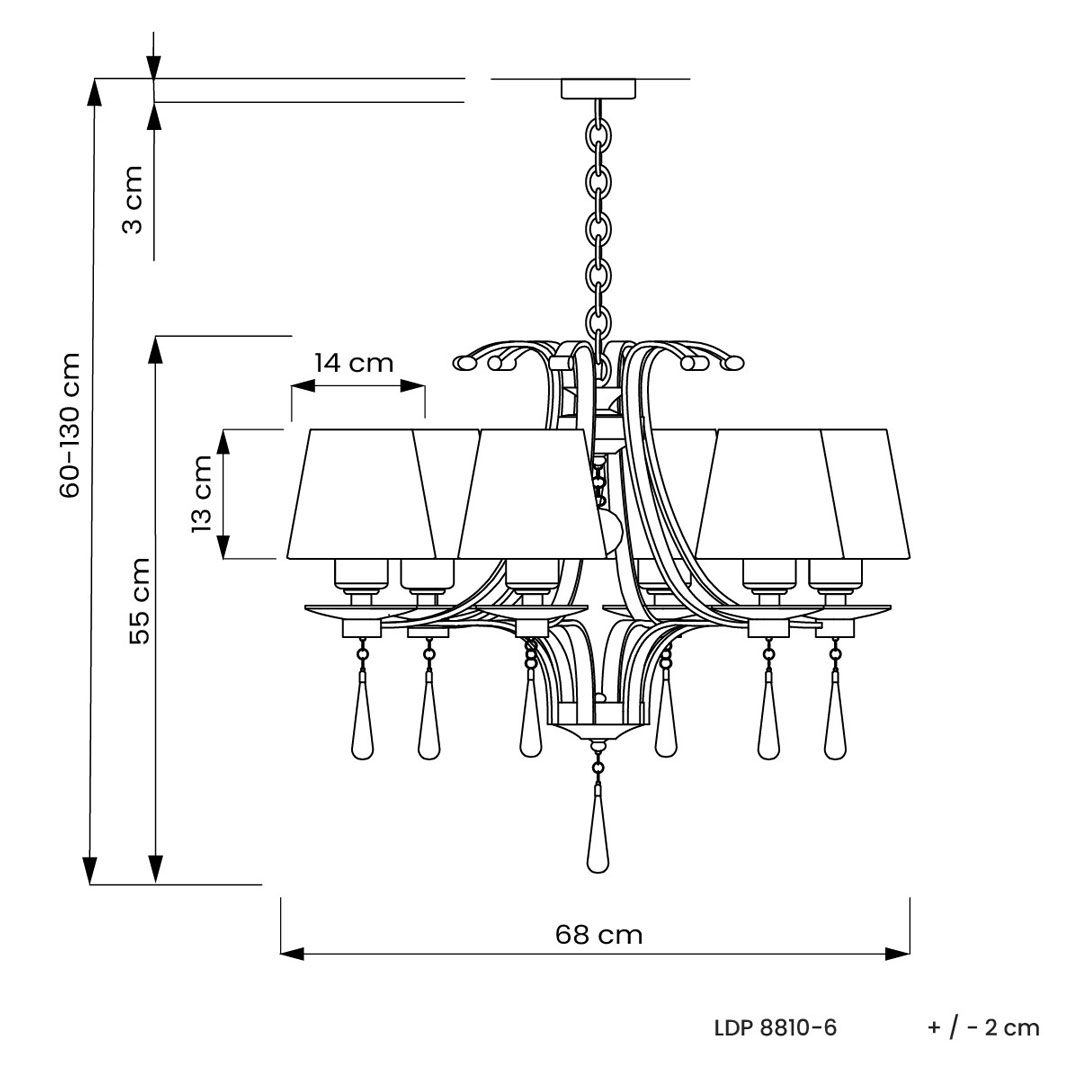 6 żarówek E27 / 220 - 240 V / max 40 W (razem 240 W) (brak w zestawie)