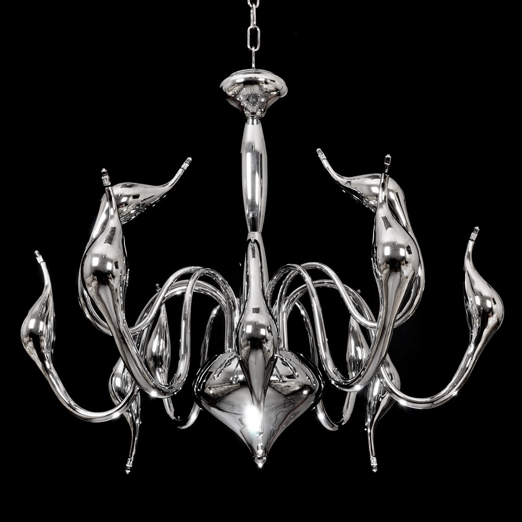 Srebrny, designerski i luksusowy żyrandol nowoczesny do salonu MAGICA przypominający kształtem łabędzie.